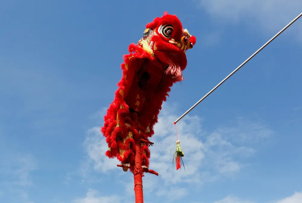 A man performs a lion dance ahead of the Chinese Lunar New Year in Phnom Penh, Cambodia, January 26, 2017. (Photo by Samrang Pring/Reuters)