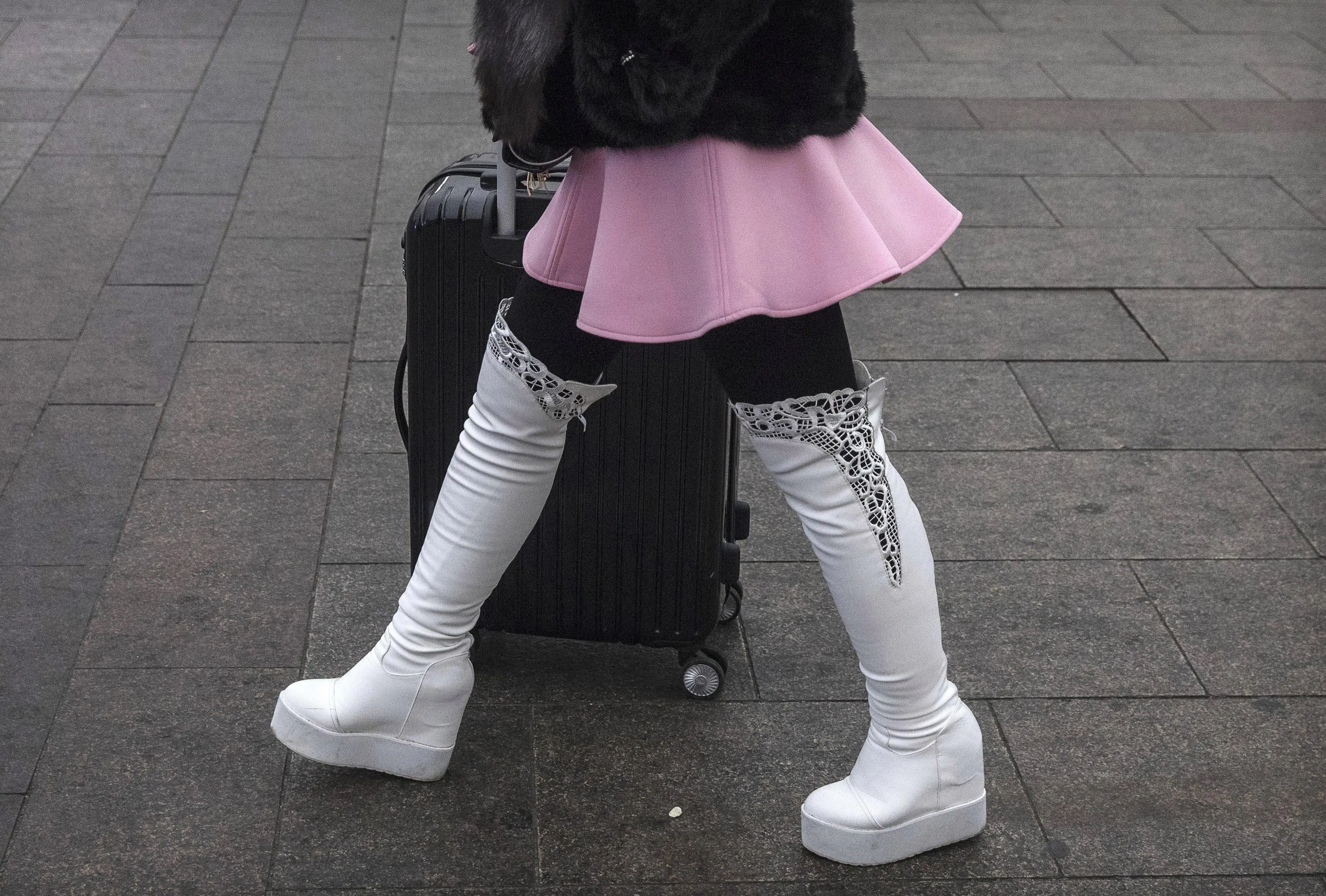 A Chinese woman wheels her suitcase before traveling home at Beijing Railway Station on January 26, 2017 in Beijing, China. (Photo by Kevin Frayer/Getty Images)