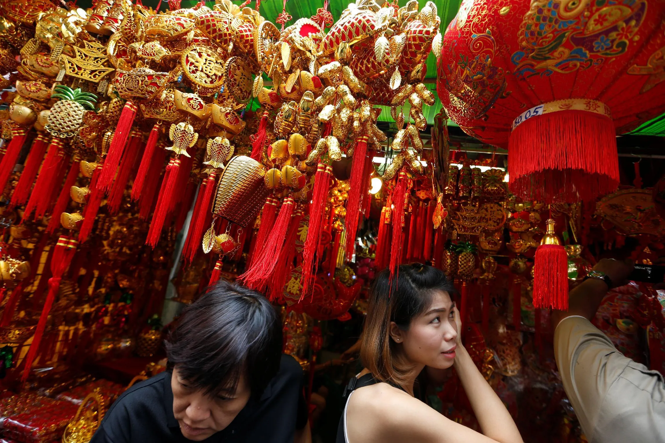 Costumers are seen inside a decorations shop ahead of the upcoming Year of the Rooster celebrations in Chinatown, Bangkok, Thailand January 25, 2017. (Photo by Jorge Silva/Reuters)