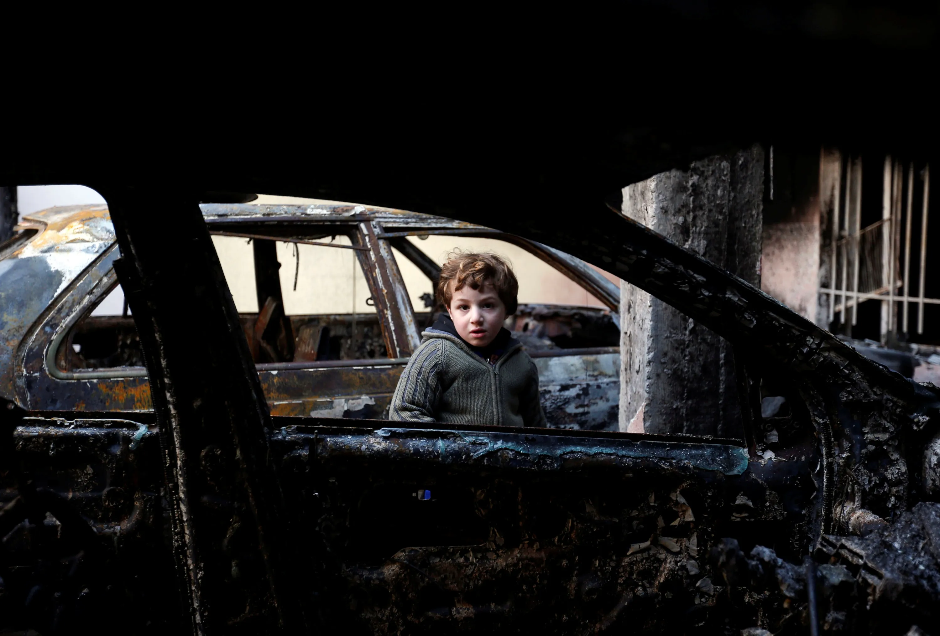 A child is seen at a house which was burned by Islamic State militants before they fled the area, in the Arabi neighborhood in Mosul, Iraq January 26, 2017. (Photo by Muhammad Hamed/Reuters)