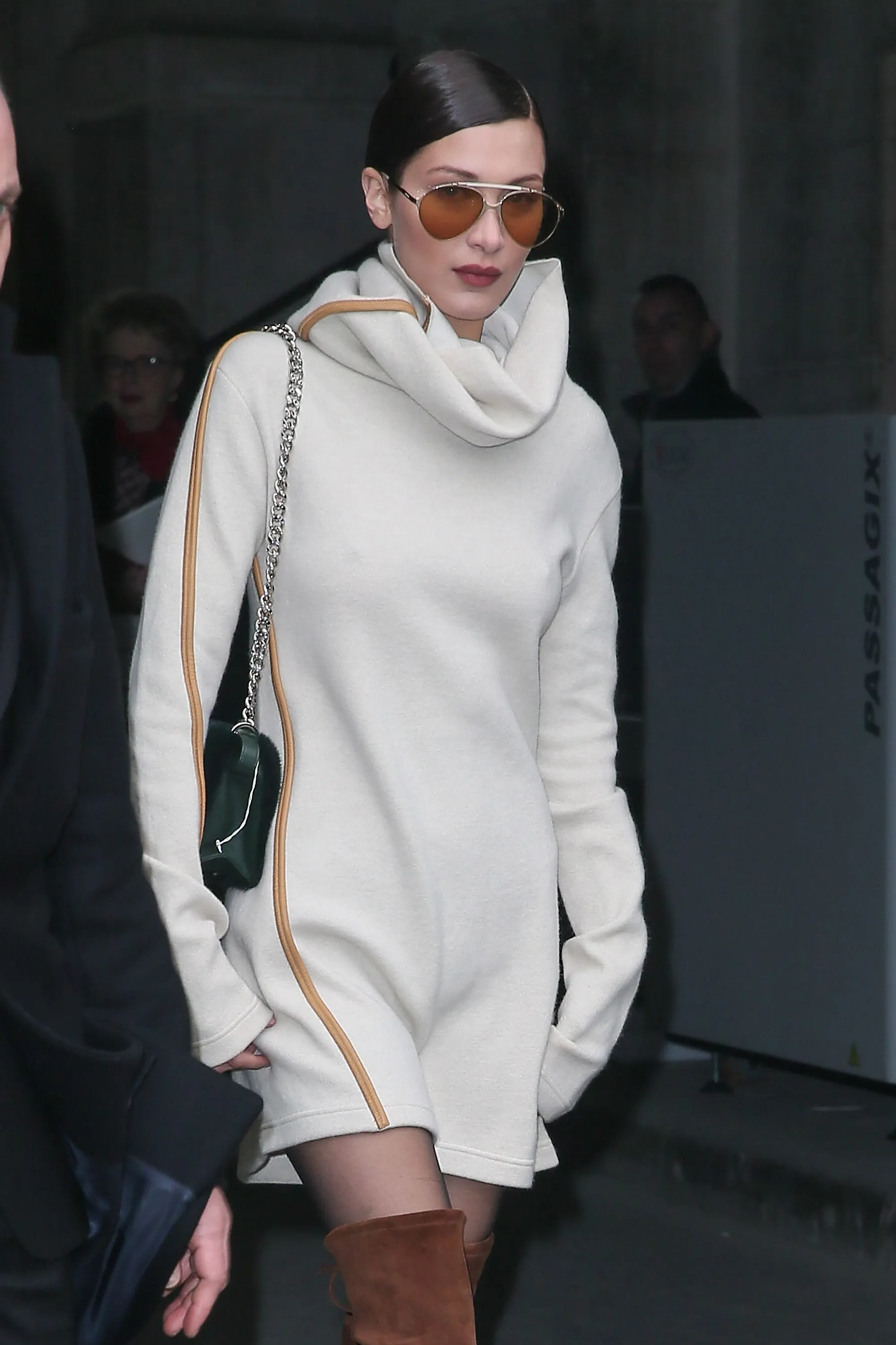 Bella Hadid leaves the Chanel Haute Couture Spring Summer 2017 show as part of Paris Fashion Week on January 24, 2017 in Paris, France. (Photo by Pierre Suu/Getty Images)