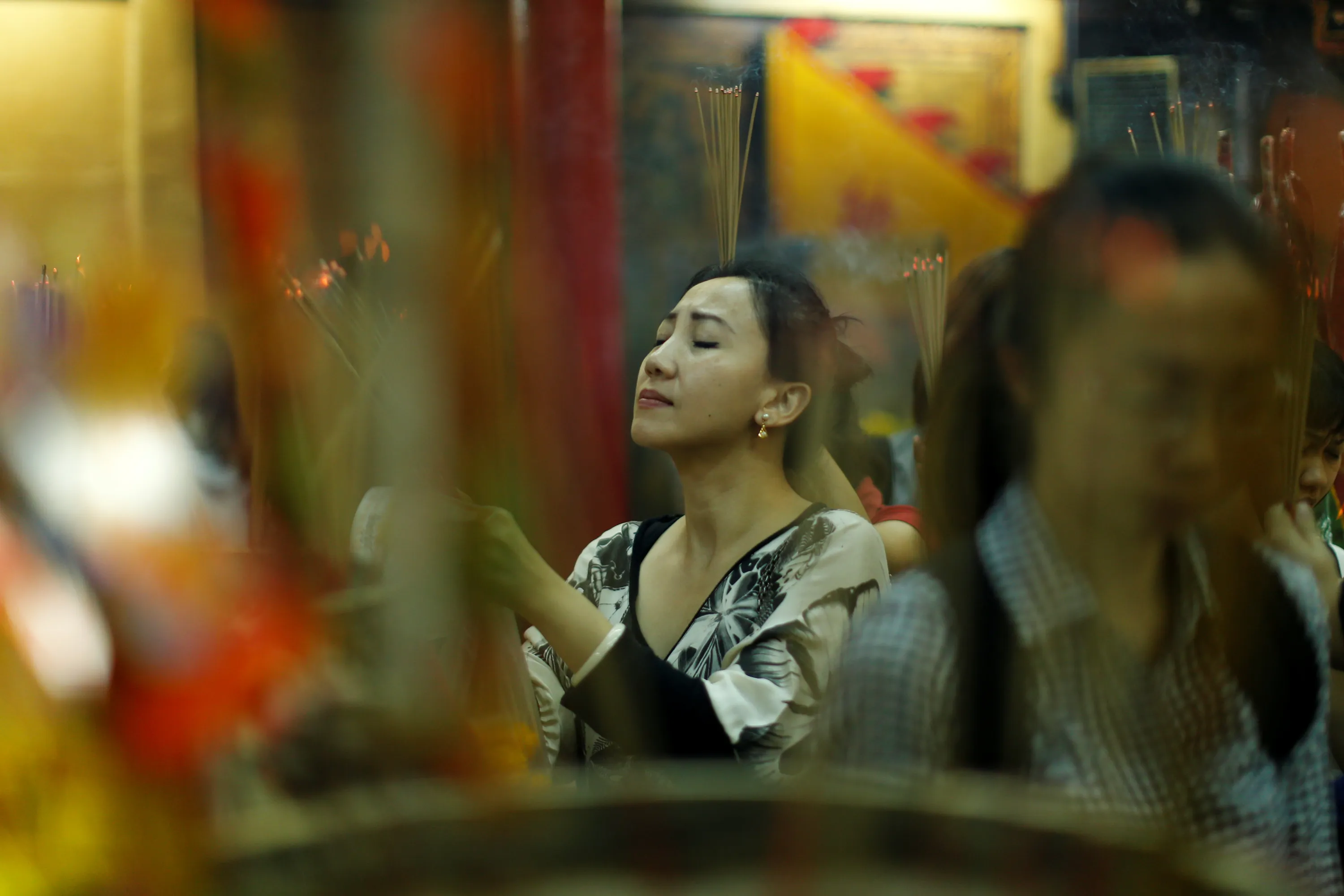 A woman prays in a temple during the Lunar New Year's eve celebration in Bangkok, Thailand January 27, 2017. (Photo by Jorge Silva/Reuters)