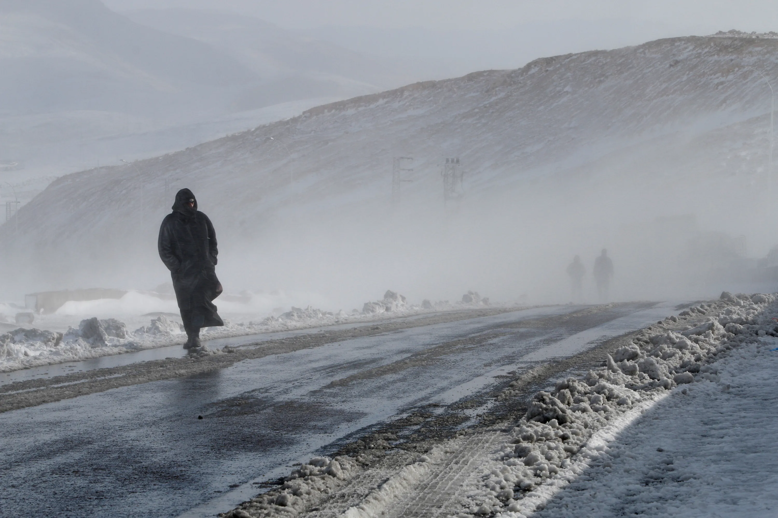 A man walks near snow on the closed off Damascus to Homs highway, Syria January 28, 2017. (Photo by Omar Sanadiki/Reuters)