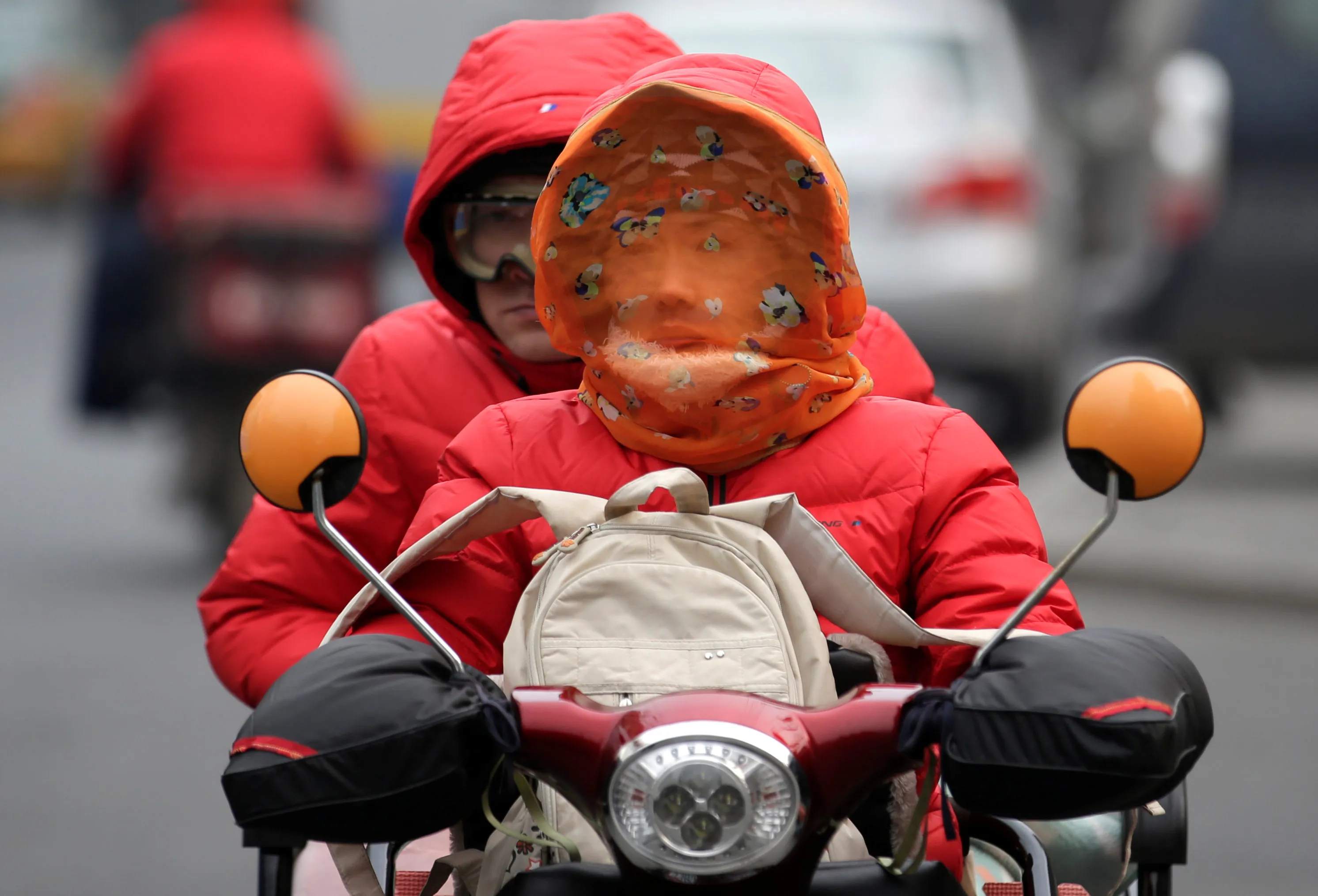 A woman covered with a scarf drives along a road on a winter day in Beijing, China, January 16, 2017. (Photo by Jason Lee/Reuters)