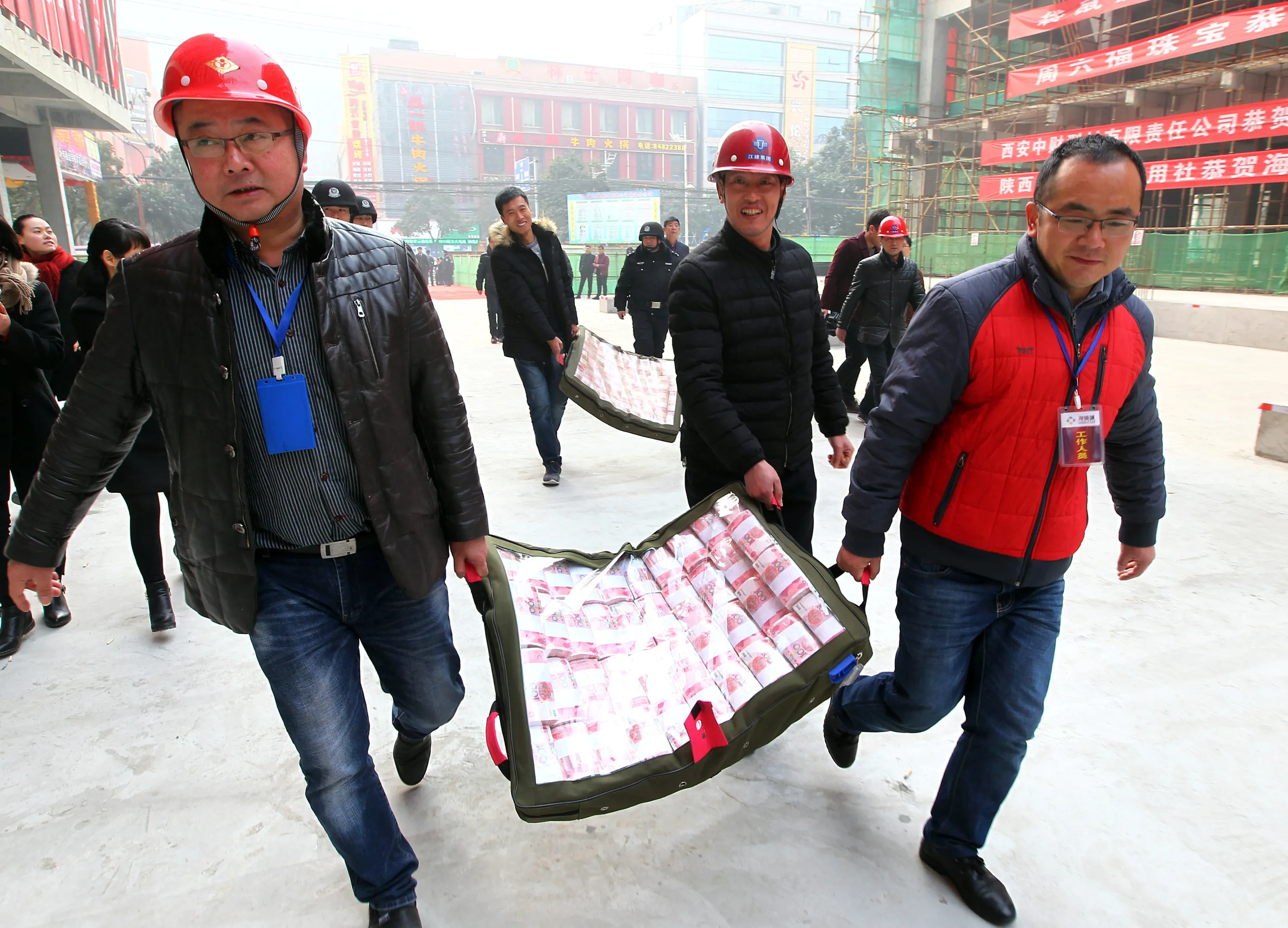 Staff prepare to give out salary and bonus to migrant workers ahead of the Spring Festival at a construction site in Xi'an, Shaanxi province, China, Janauary 18, 2017. (Photo by Reuters/Stringer)