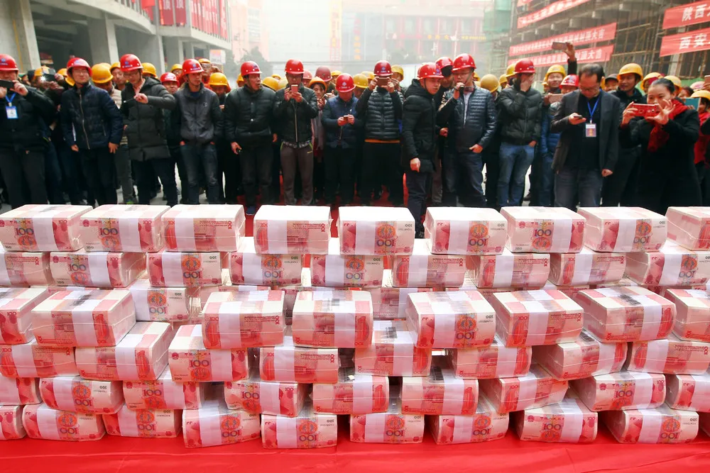 Migrant workers wait to collect their salary and bonus ahead of the Spring Festival at a construction site in Xi'an, Shaanxi province, China, Janauary 18, 2017. (Photo by Reuters/Stringer)