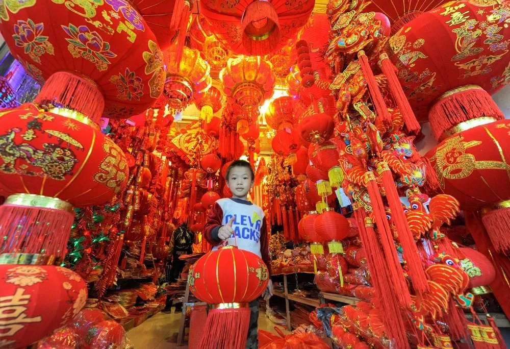 A boy holding a lantern walks out from a store selling Spring Festival decorations in Haikou, Hainan province, China, January 21, 2017. (Photo by Reuters/Stringer)