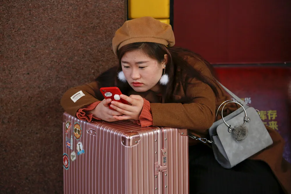 A passenger checks her phone at a waiting hall of the Beijing Railway Station in central Beijing, China January 27, 2017 as China gears up for Lunar New Year, when hundreds of millions of people head home. (Photo by Damir Sagolj/Reuters)