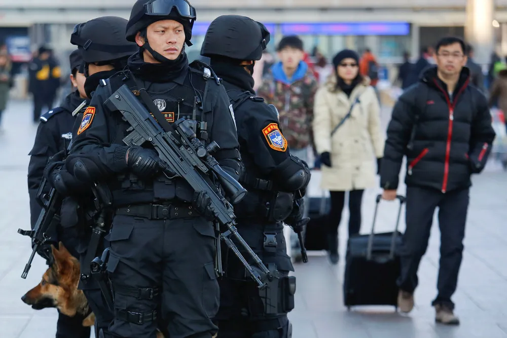 Members of police swat team patrol with their dog at the Beijing Railway Station in central Beijing, China January 27, 2017 as China gears up for Lunar New Year, when hundreds of millions of people head home. (Photo by Damir Sagolj/Reuters)