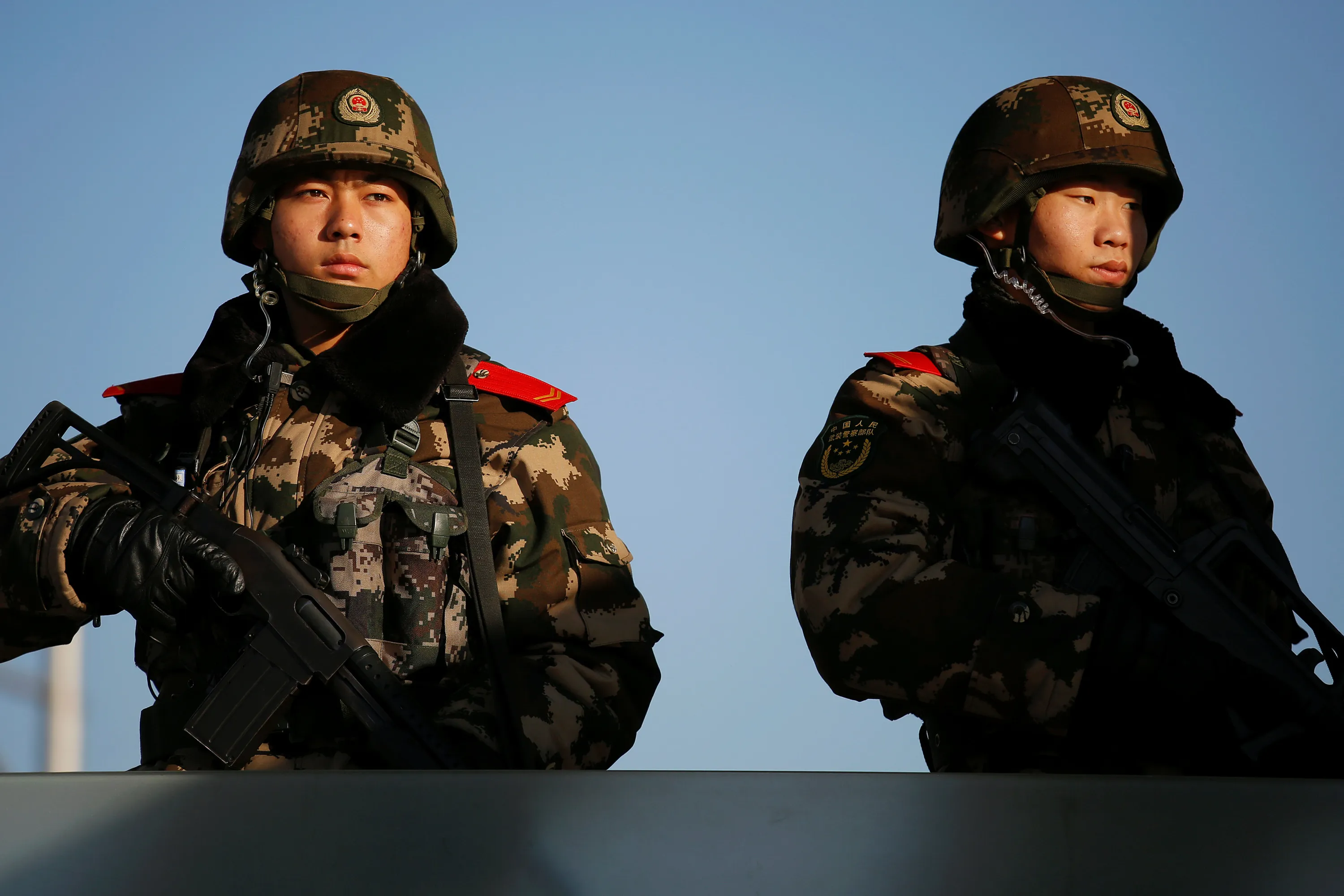 Paramilitary policemen hold weapons as they secure the area in front of the Beijing Railway Station in central Beijing, China January 27, 2017 as China gears up for Lunar New Year, when hundreds of millions of people head home. (Photo by Damir Sagolj/Reuters)