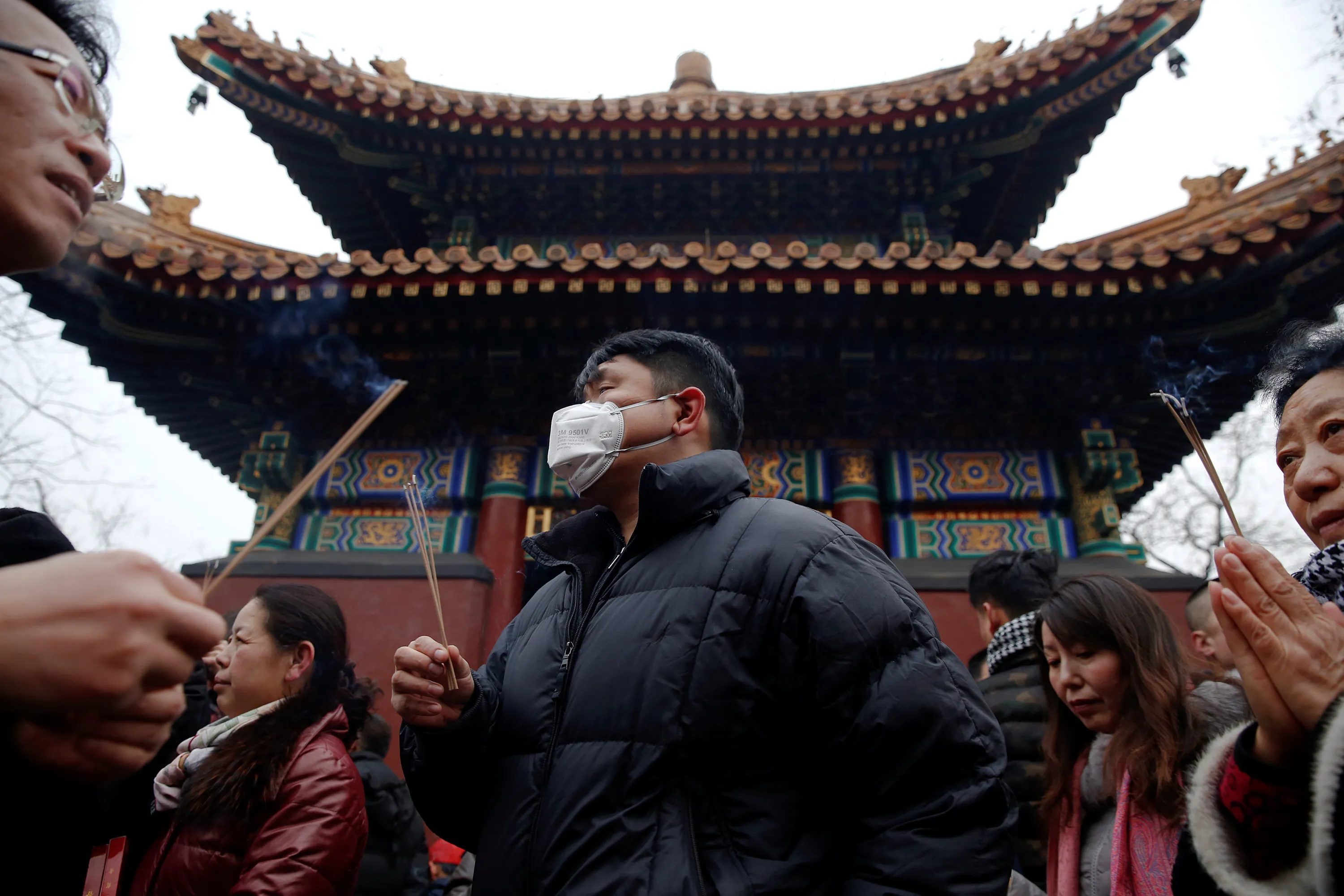 People burn incense sticks and pray for good fortune at Yonghegong Lama Temple on the first day of the Lunar New Year of the Rooster in Beijing, China January 28, 2017. (Photo by Damir Sagolj/Reuters)