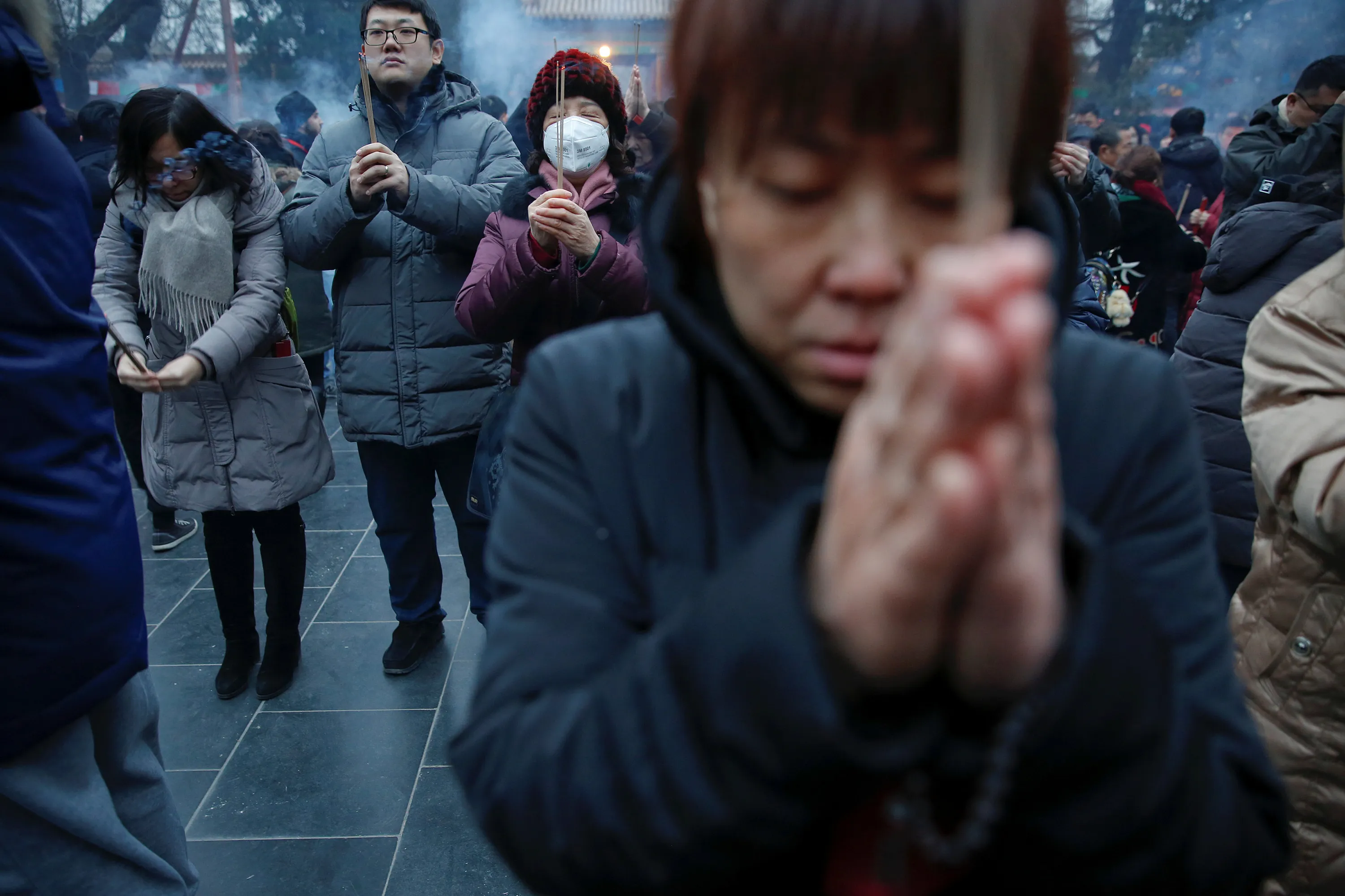 People burn incense sticks and pray for good fortune at Yonghegong Lama Temple on the first day of the Lunar New Year of the Rooster in Beijing, China January 28, 2017. (Photo by Damir Sagolj/Reuters)