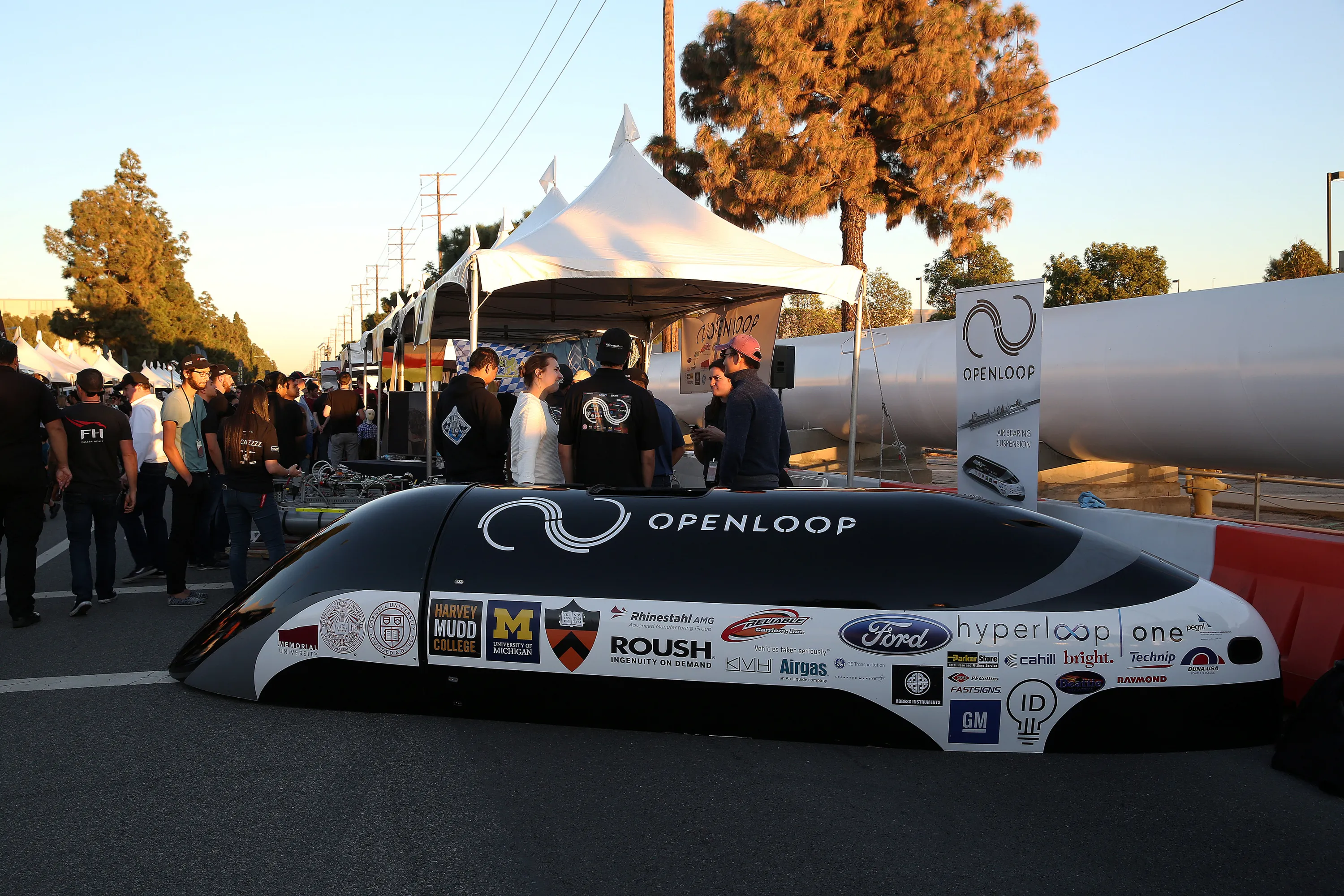 The pod cover for team Openloop, a six school alliance including Northeastern, Memorial University, Princeton, Cornell, Harvey Mudd College and the University of Michigan at the SpaceX Hyperloop Pod Competition in Hawthorne, Los Angeles, California, U.S., January 29, 2017. (Photo by Monica Almeida/Reuters)