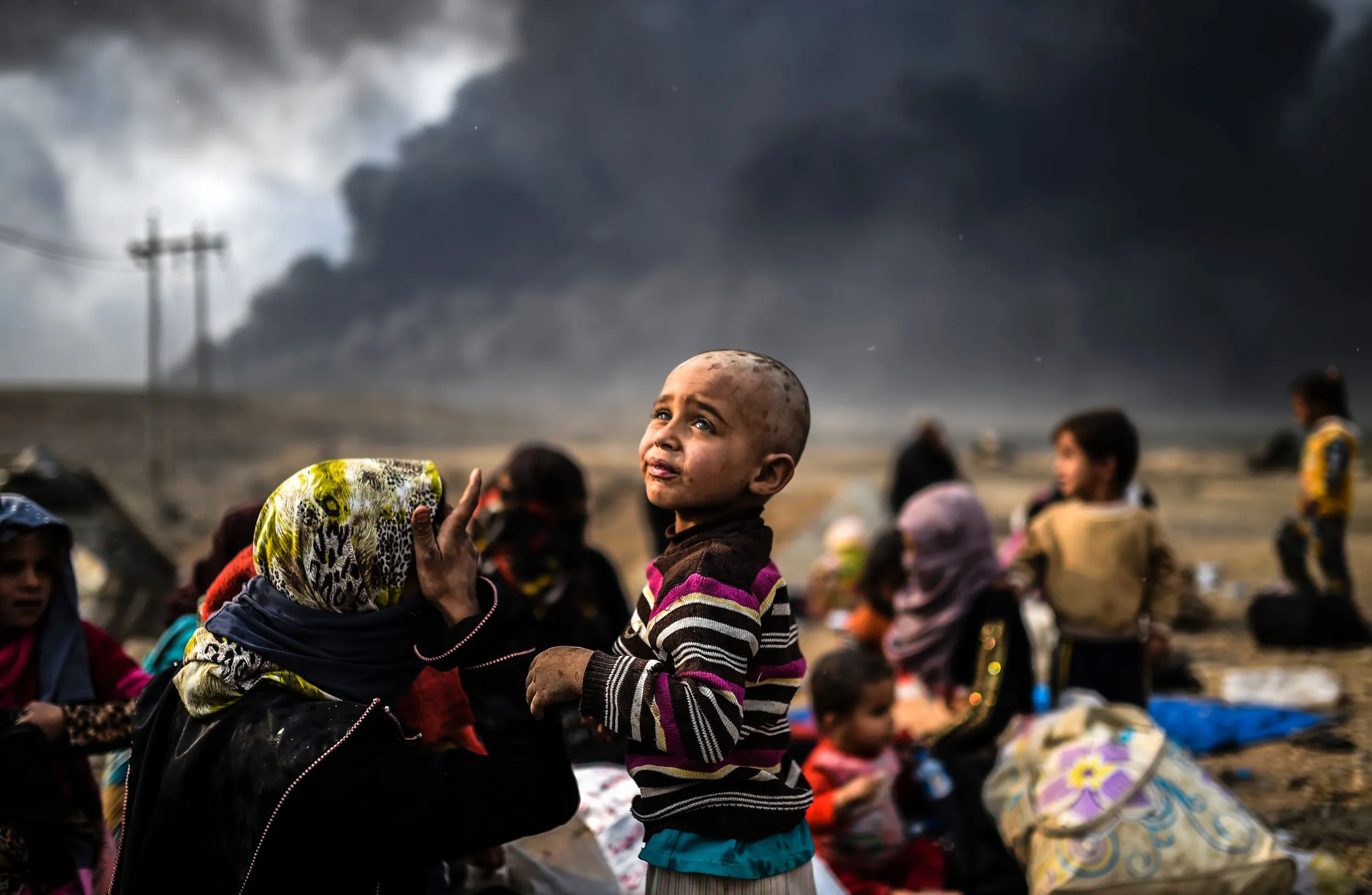 Iraqi families who were displaced by the ongoing operation by Iraqi forces against jihadistds of the Islamic State group to retake the city of Mosul, are seen gathering on an area near Qayyarah on October 24, 2016. The UN refugee agency is preparing to receive 150,000 Iraqis fleeing fighting around the Islamic State group-held city of Mosul within the next few days, its chief said. (Photo by Bulent Kilic/AFP Photo)