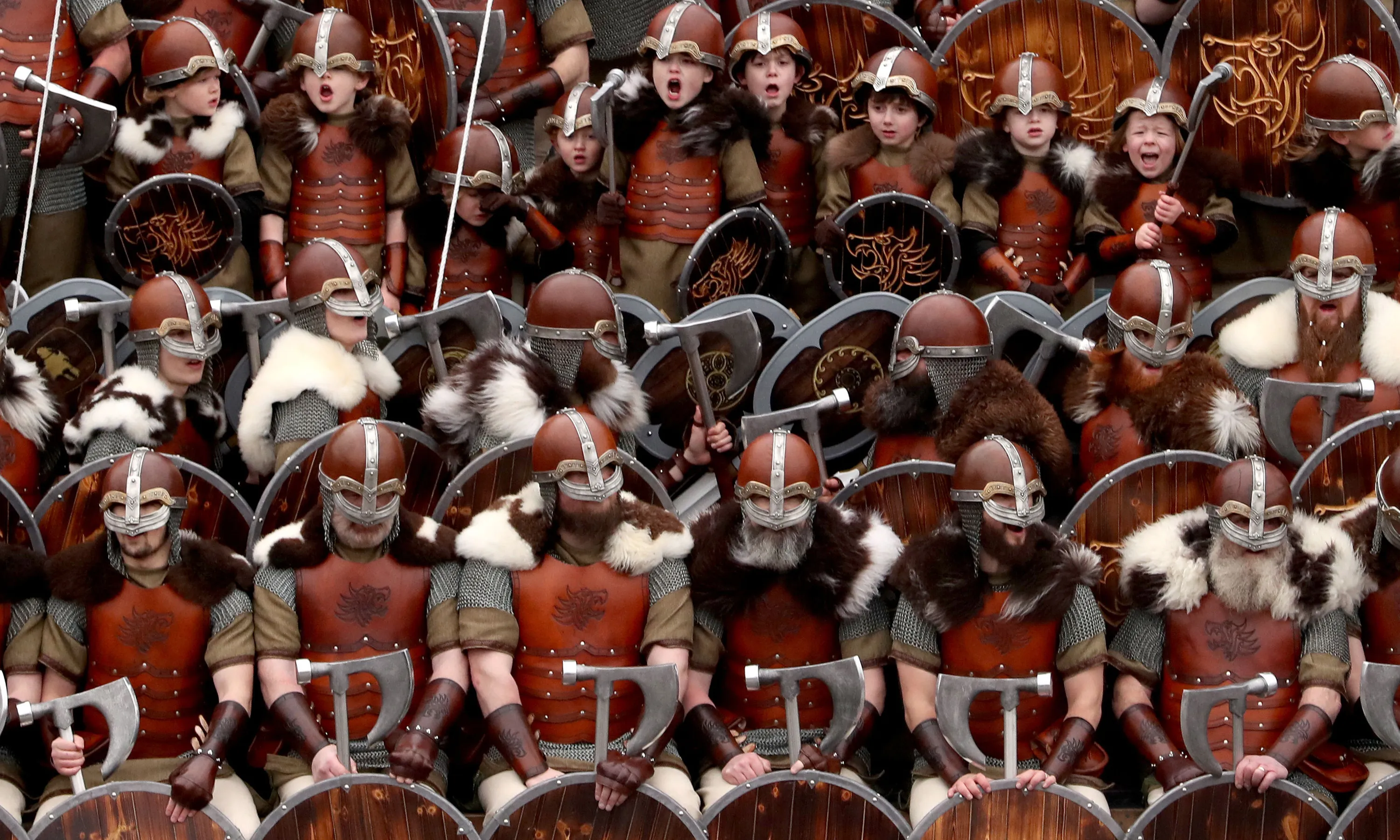 Members of the Jarl Squad visit the British Legion as they march through the streets of Lerwick on January 31, 2017 in the Shetland Islands, Scotland. (Photo by Jane Barlow/PA Wire)