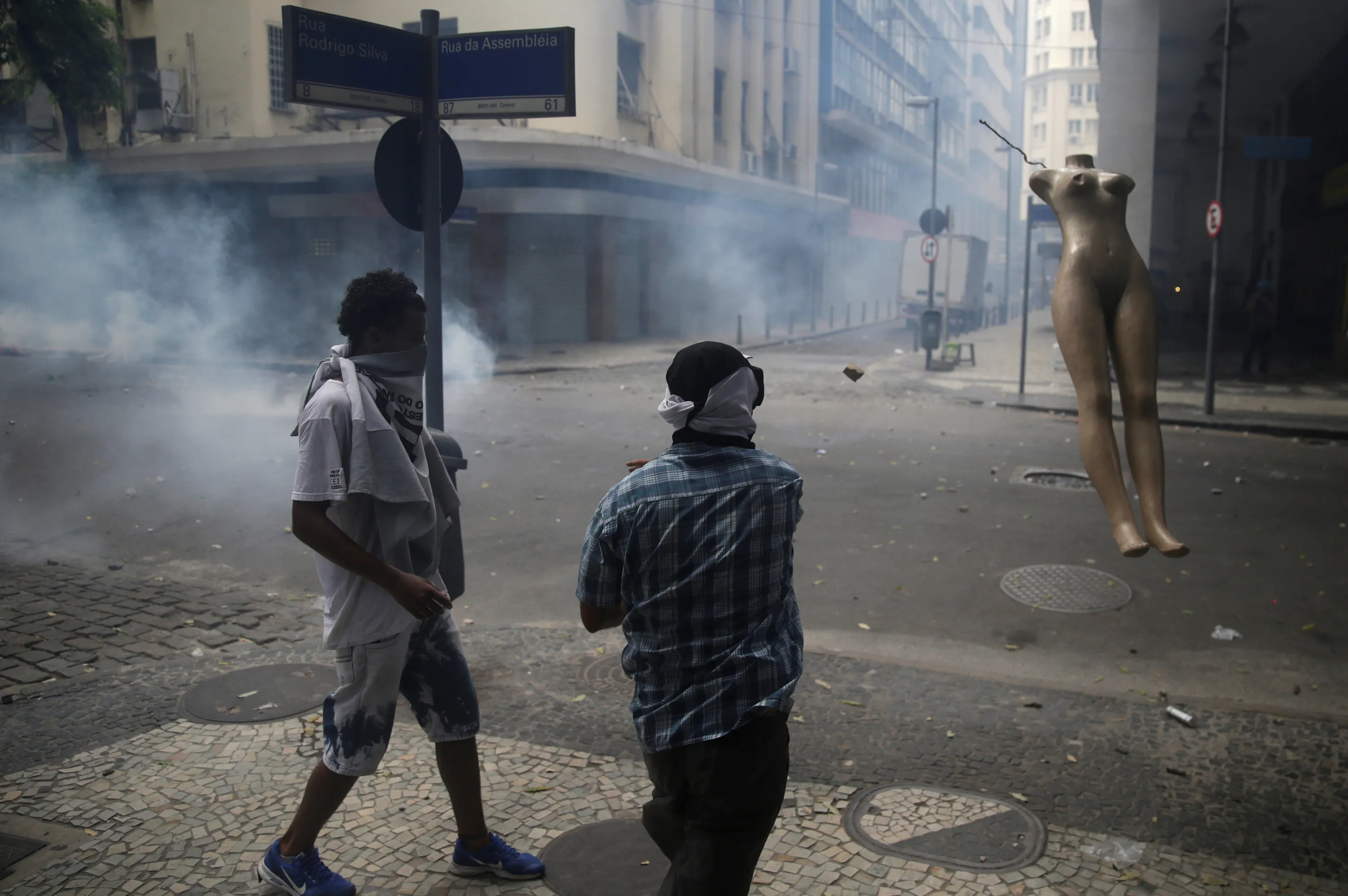 Anti-government demonstrators clash with riot policemen during a protest against the Rio de Janeiro state government and a plan that will limit public spending, next to the State Assembly of Rio de Janeiro, Brazil February 1, 2017. (Photo by Ricardo Moraes/Reuters)
