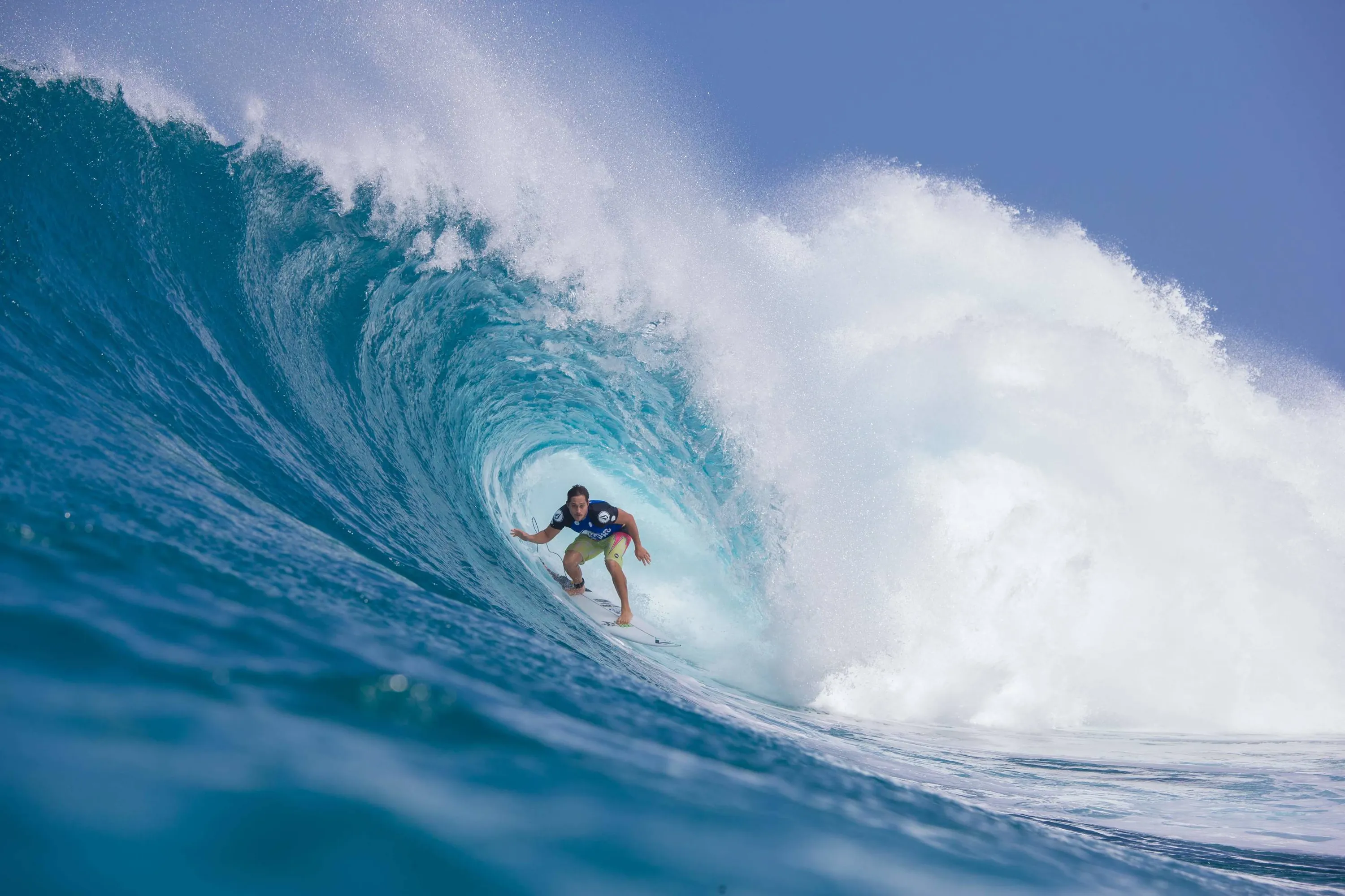 Makua Kai Rothmn of Hawaii rides the wave during the 2017 Volcom Pipe Pro at Pipeline and Backdoor on February 3, 2017 in Oahu, Hawaii. (Photo by Brian Bielmann/AFP Photo)
