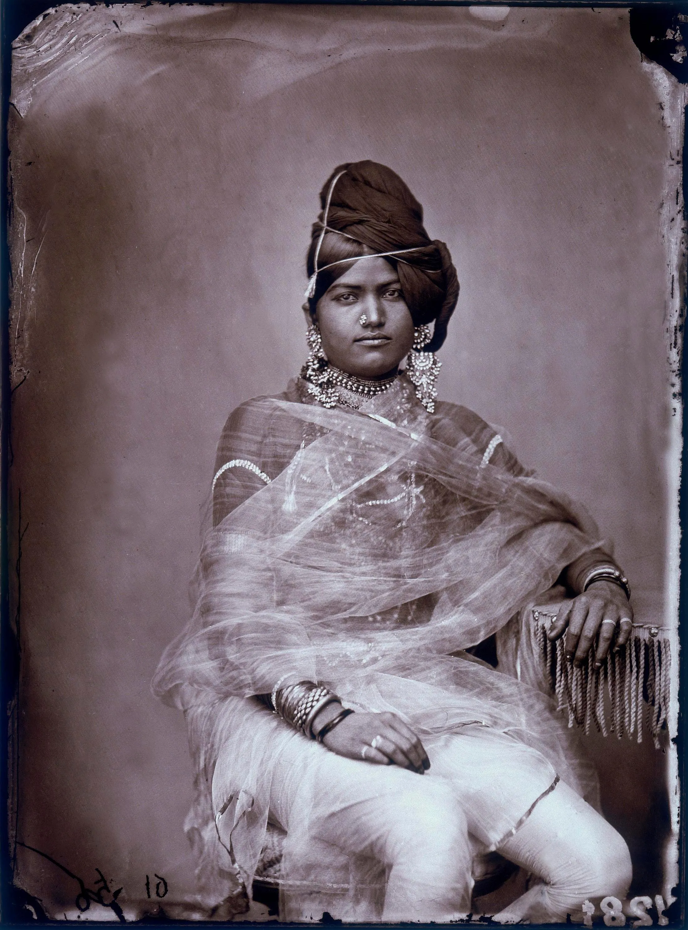 These images give a rare insight into the life of a 19th Century Indian Maharajah. Maharajah Ram Singh ruled in the famous pink city of Jaipur between 1835 and 1880, and was also a keen photographer. Despite being a child when he ascended to the throne, the Maharajah embraced modern amenities and under his leadership the city became one of the most distinctive in the country. He would often roam the streets incognito to observe how state officials were carrying out their work, and was recognised by the British Government, which added four guns to his salute and nominated him as a member of the Viceroy’s Legislative Council. During his reign new water works, gas works, museums and schools were built, and he devoted a lot of his time to capturing the costumes and culture of his people with his then state-of-the-art camera equipment. Here: Portrait of a woman in the harem of the royal palace of Jaipur, India, circa 1857. (Photo by Maharaja Ram Singh III/Alinari Archives, Florence/Alinari via Getty Images)