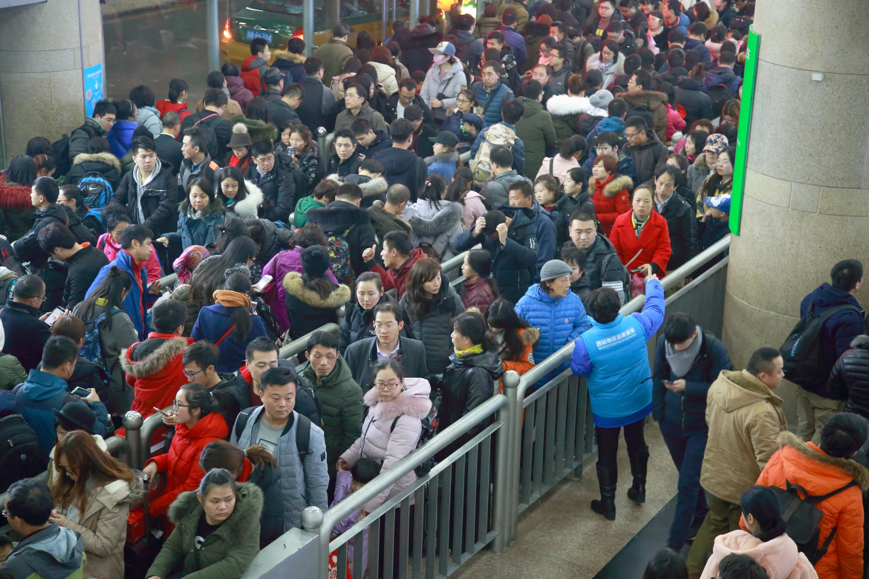 Passengers wait for taxi at Beijing west railway station at the end of the Chinese Lunar New Year holidays, in Beijing, China February 2, 2017. (Photo by Reuters/Stringer)