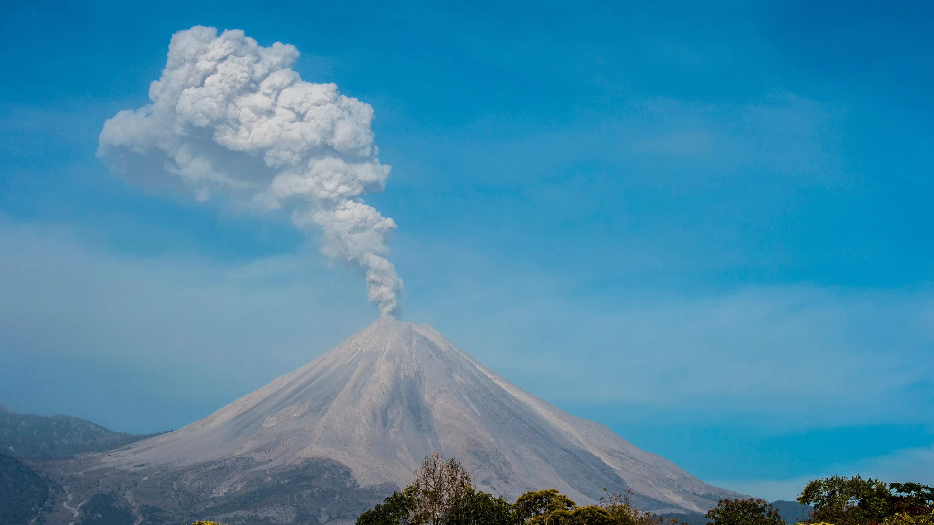 The Colima or Fuego volcano spews ash and smoke on January 23, 2017, as seen from La Yerbabuena, Colima State, Mexico. The Colima volcano is one of the most active in Mexico and in the last days its activity has intensified. (Photo by Hector Guerrero/AFP Photo)