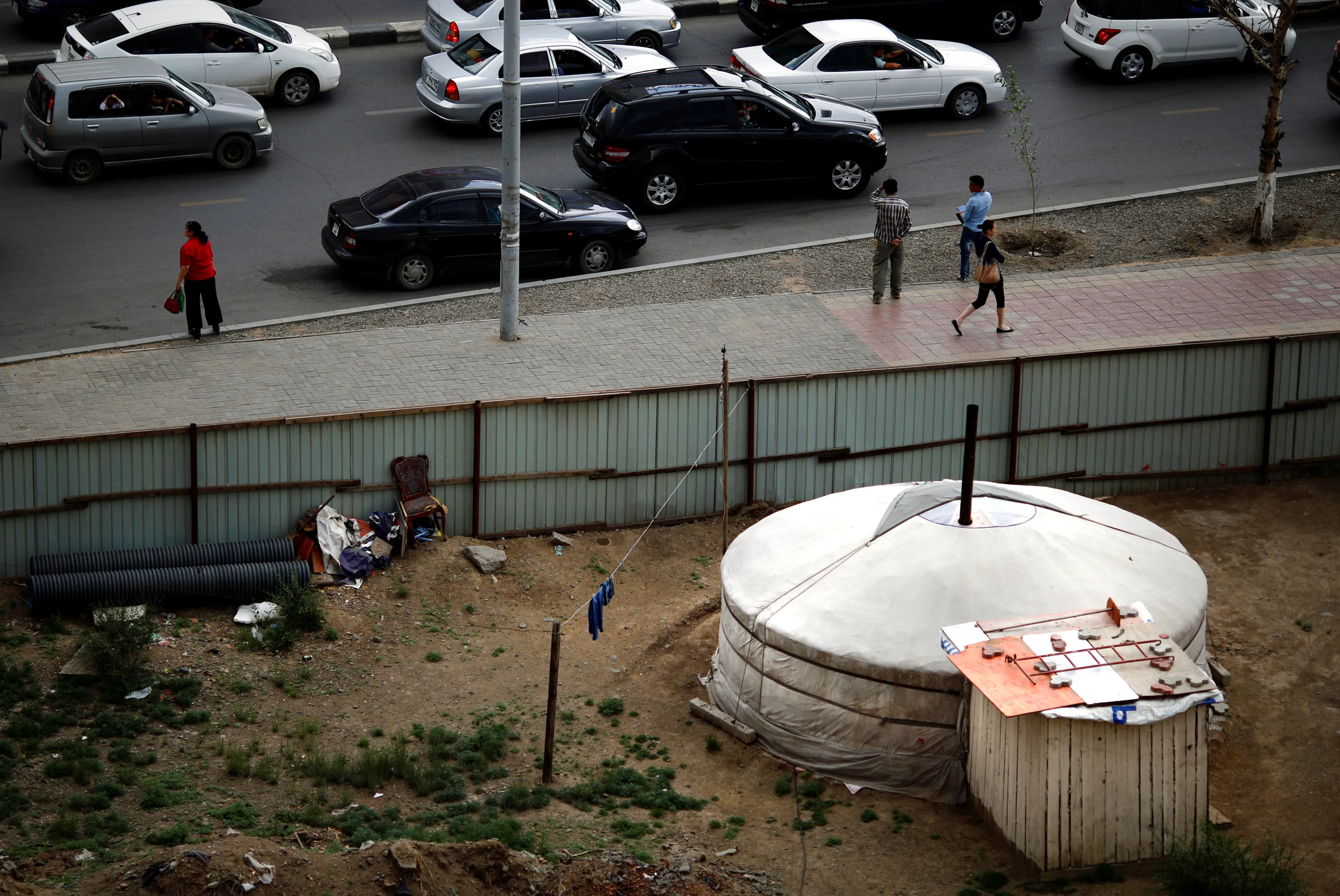 A ger, a traditional Mongolian tent, stands near a busy street in downtown Ulaanbaatar, Mongolia June 22, 2013. (Photo by Carlos Barria/Reuters)