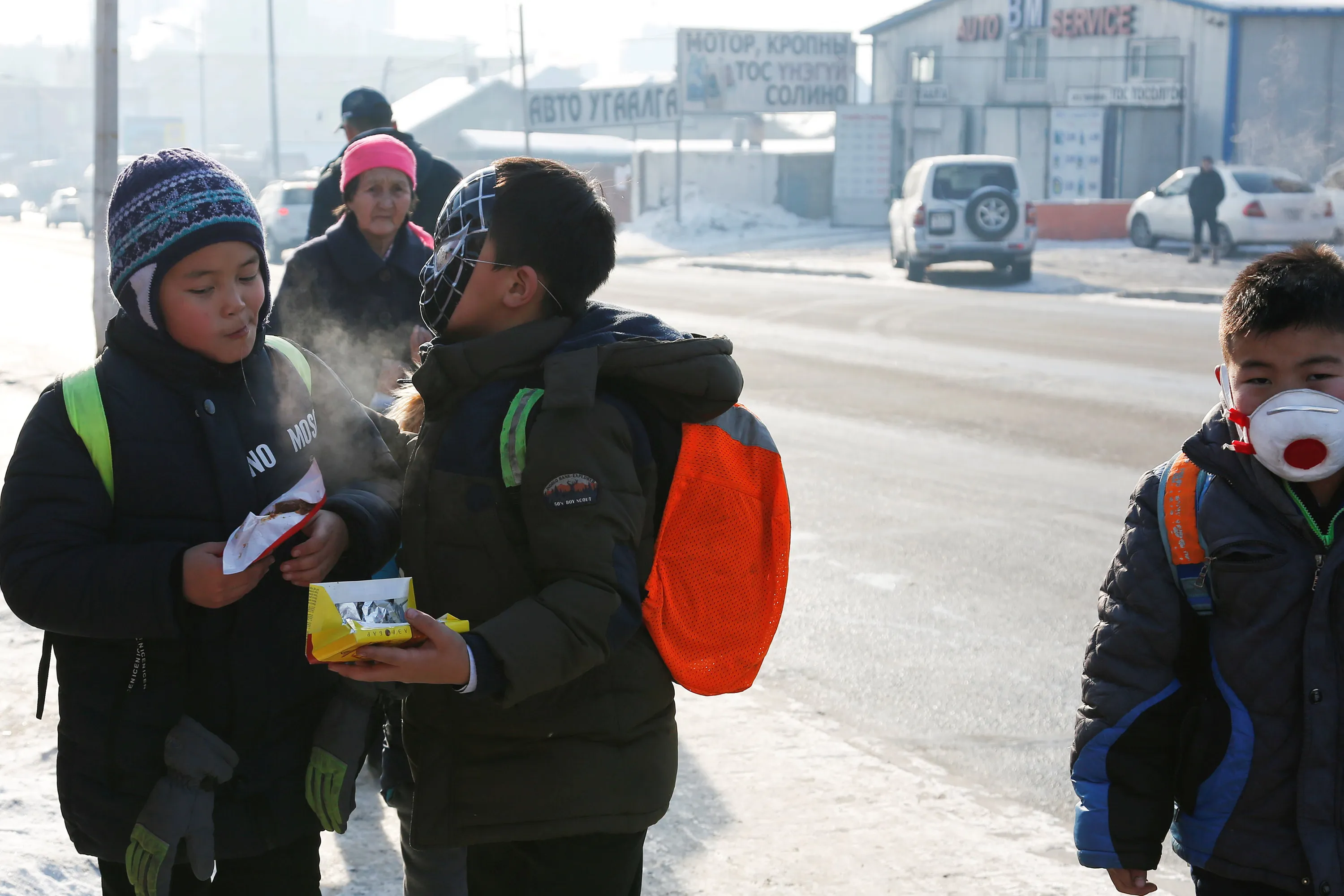 Children walk in street in Ulaanbaatar, Mongolia as the wave of extreme cold hits the country December 23, 2016. (Photo by B. Rentsendorj/Reuters)