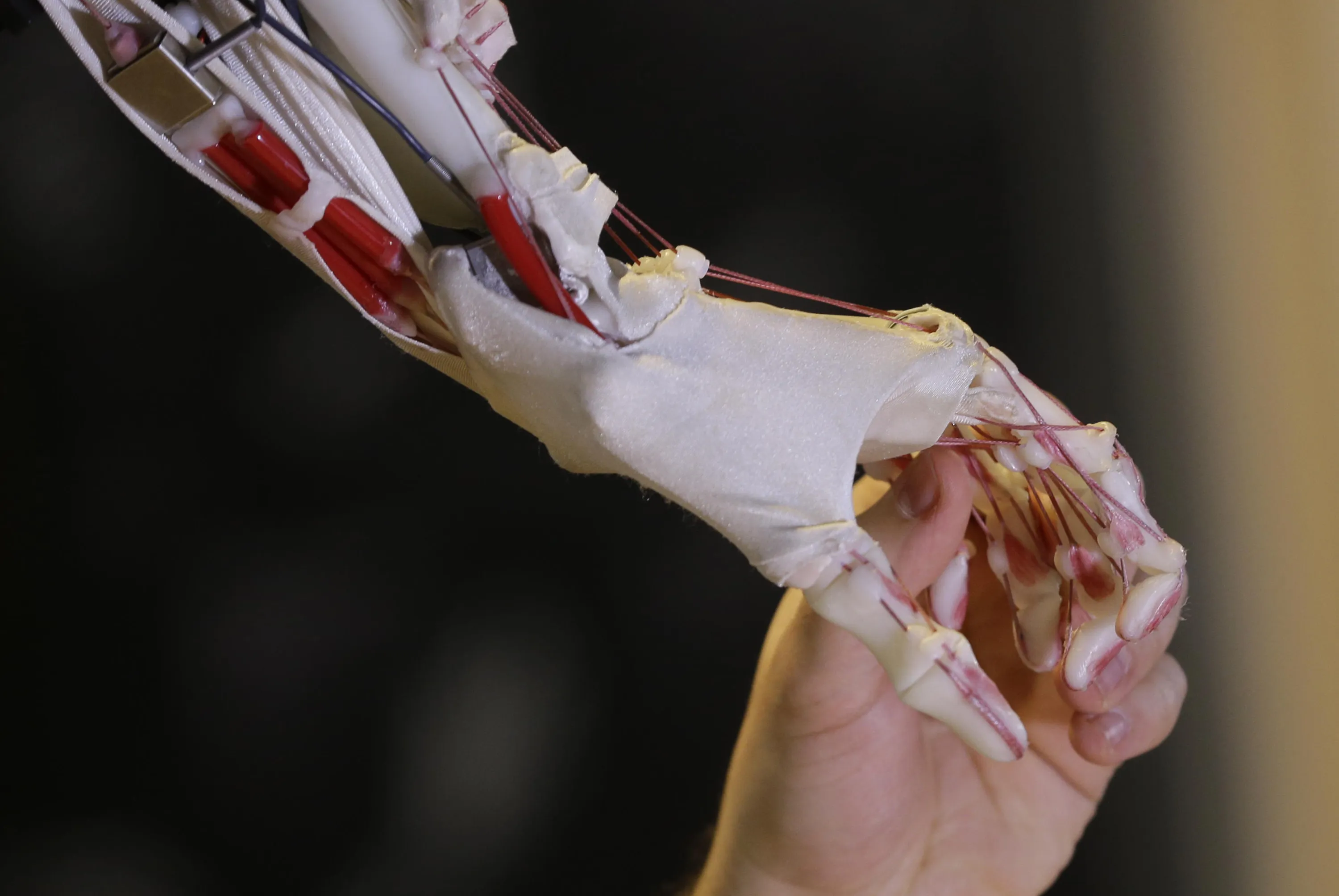 A technician holds the hand of Rob's Open Source Android (ROSAL) which was built in France from 2010-2016, during a press preview for the Robot exhibition held at the Science Museum in London, Tuesday, February 7, 2017. (Photo by Alastair Grant/AP Photo)