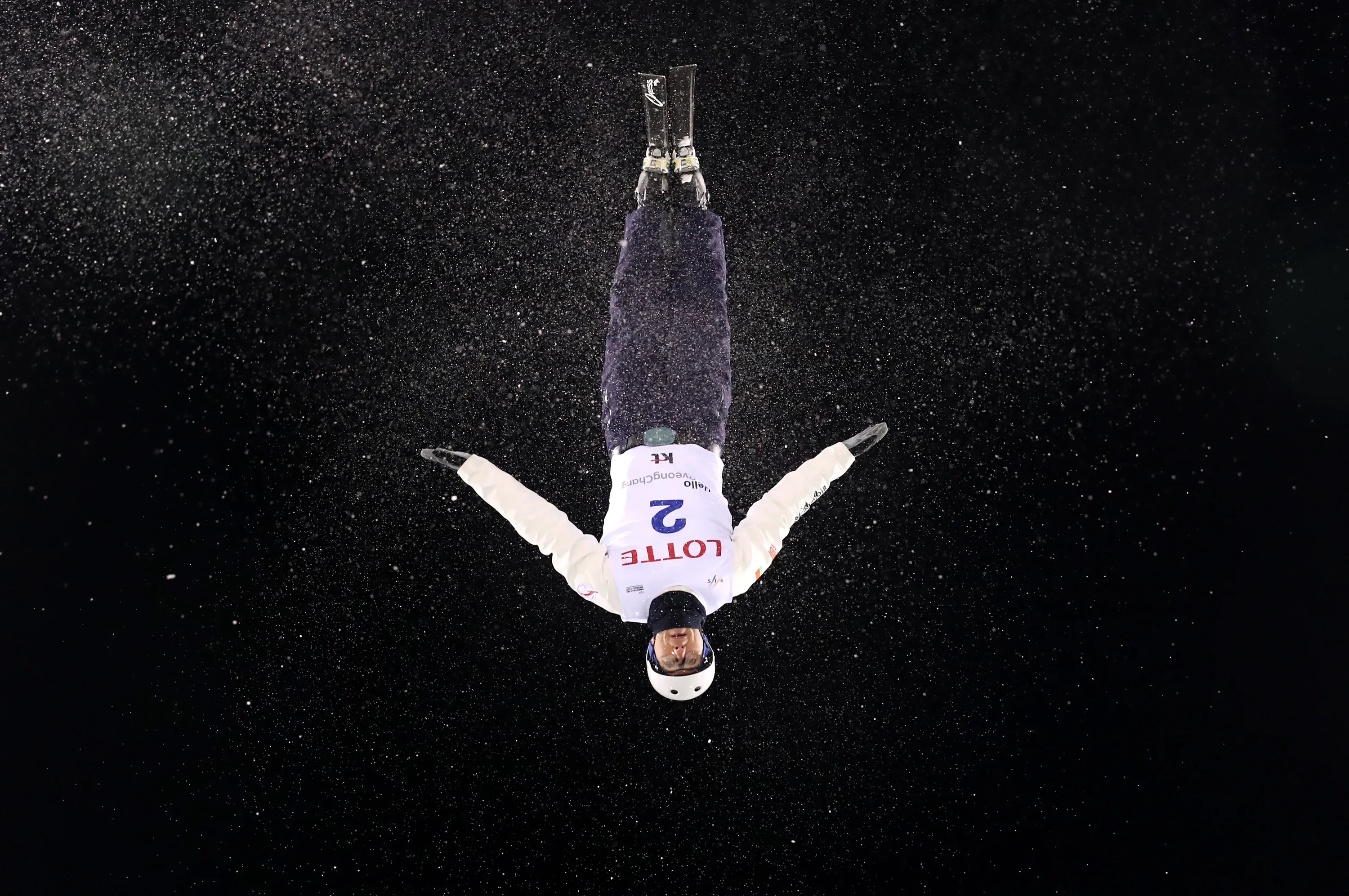 Anton Kushnir of Belarus performs an aerial during an Aerials training session prior to the FIS Freestyle World Cup at Bokwang Snow Park on February 8, 2017 in Pyeongchang-gun, South Korea. (Photo by Cameron Spencer/Getty Images)