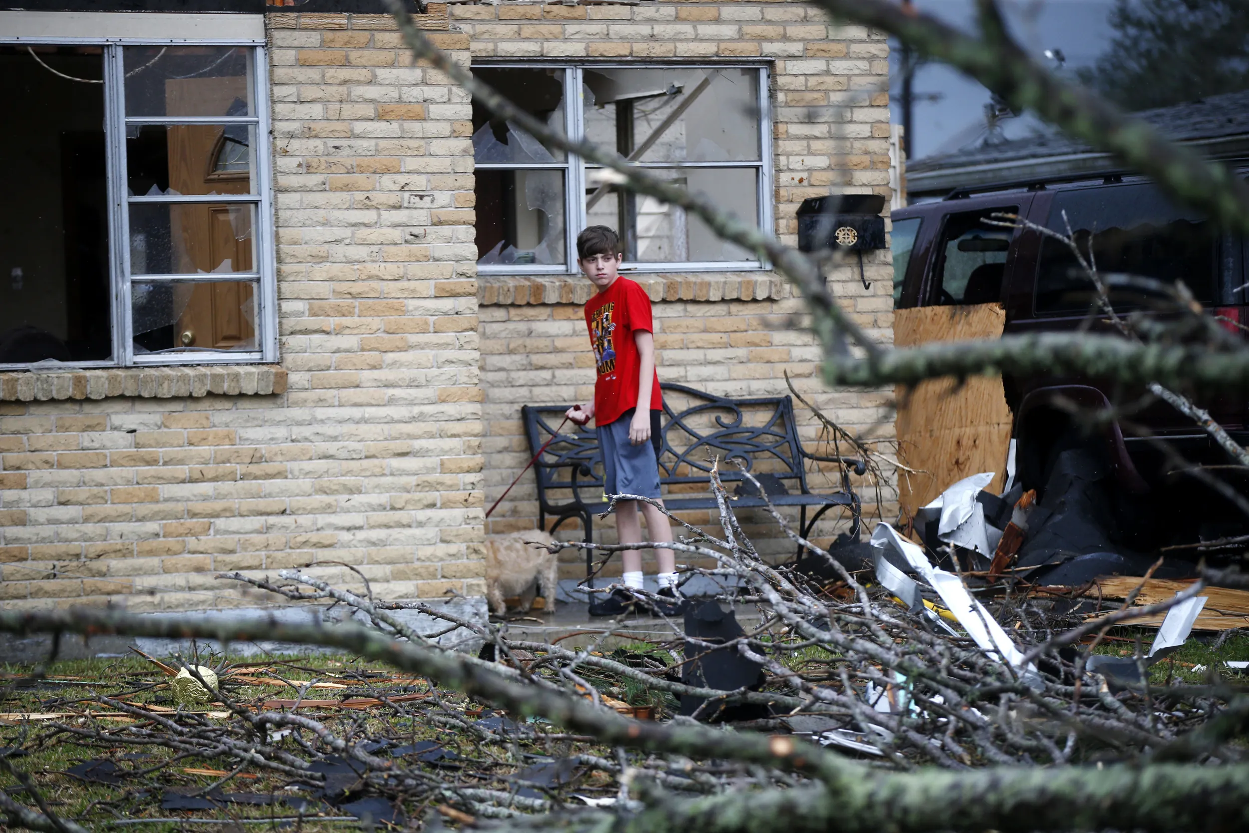 A boy holds his dog after a tornado tore through the New Orleans East neighborhood in New Orleans, Tuesday, February 7, 2017. (Photo by Gerald Herbert/AP Photo)
