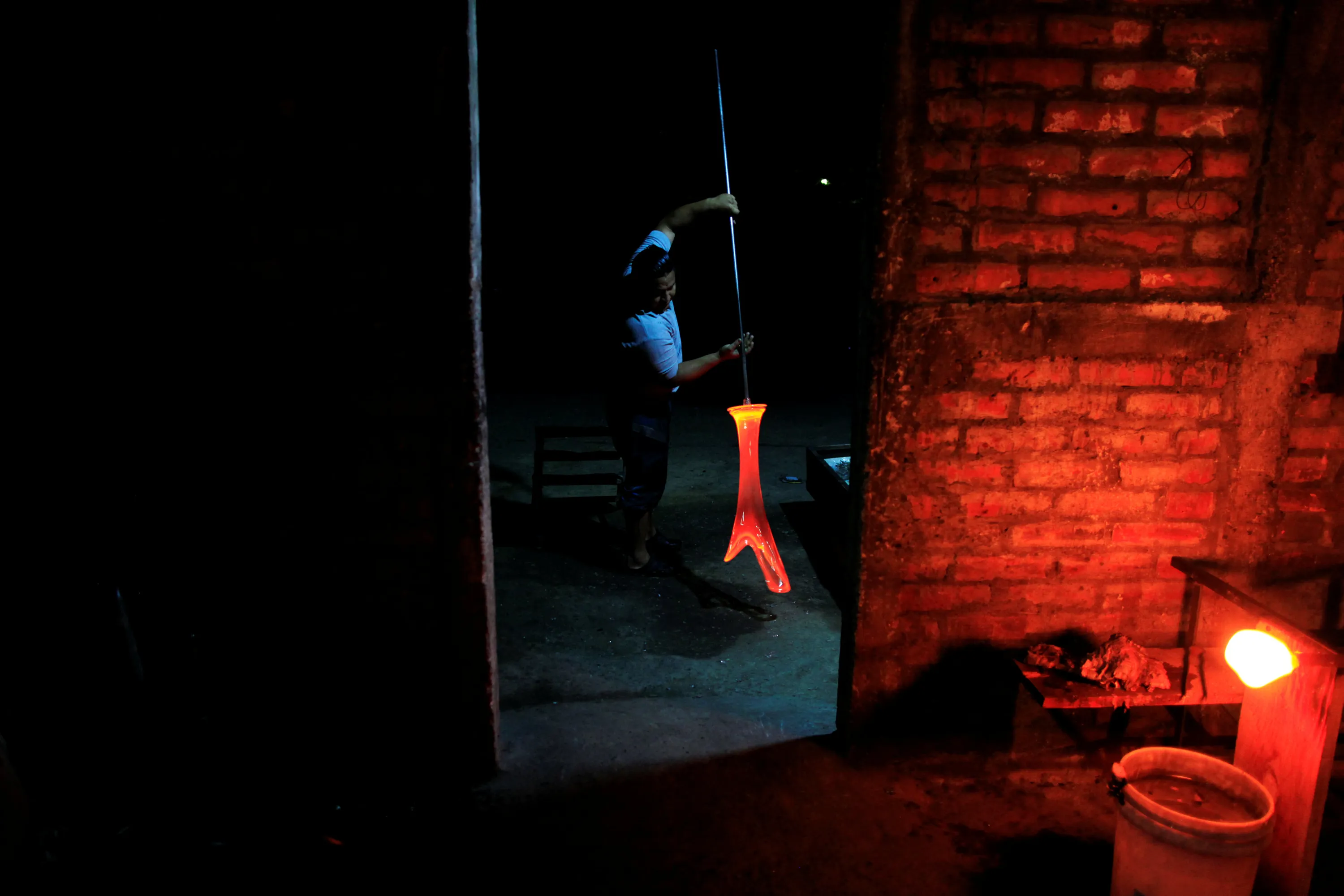 A glassmaker cools off molten glass at Cespedes factory in Olocuilta, El Salvador February 8, 2017. (Photo by Jose Cabezas/Reuters)