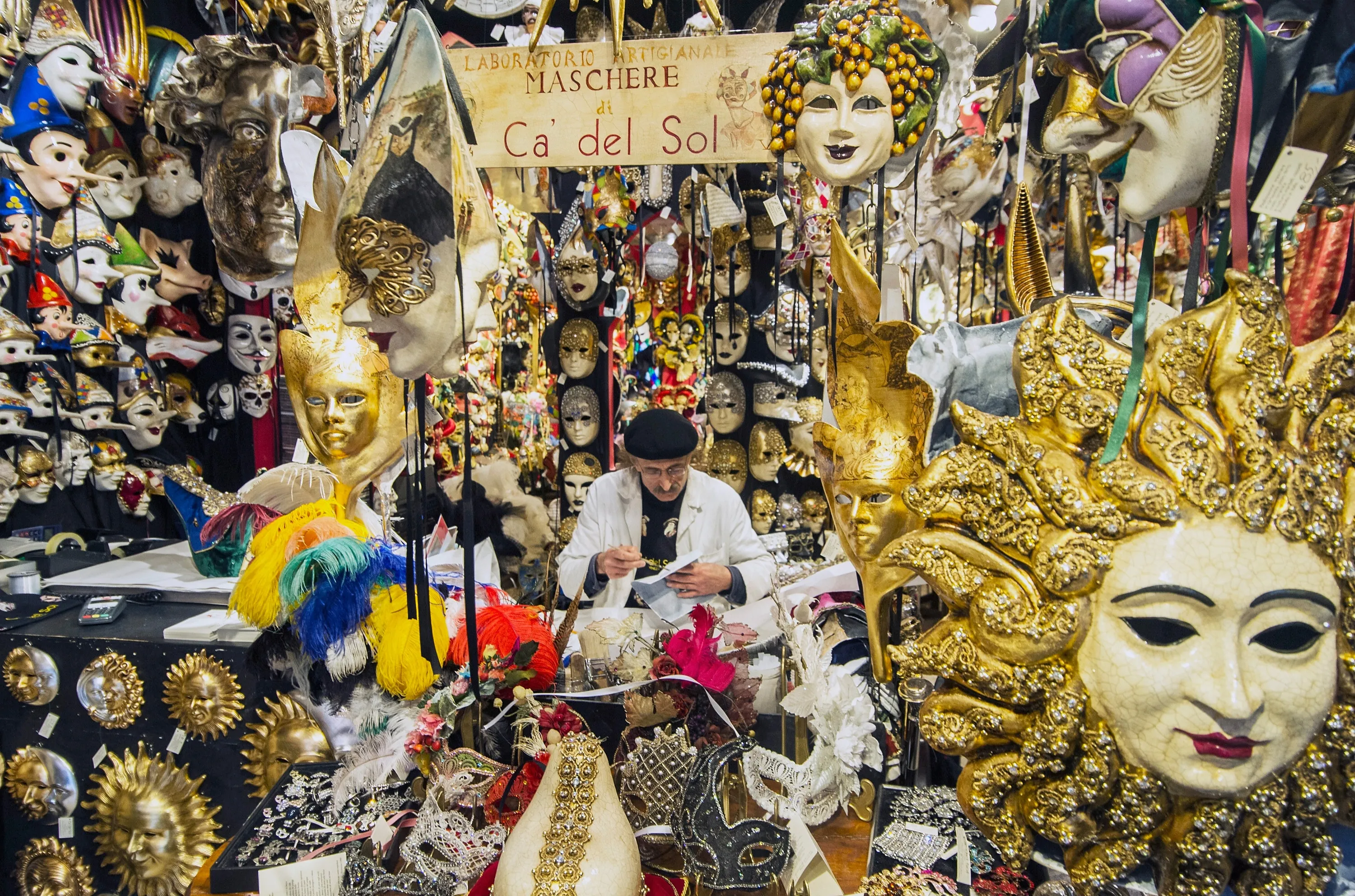 Hamid, a traditional artisan who specilises in costumes and masks, works at Ca' Del Sol on February 7, 2017 in Venice, Italy. Artisans, masks and costume makers are getting ready ahead of the 2017 Venice Carnival that will last from 11 – 28 February 2017. (Photo by Awakening/Getty Images)