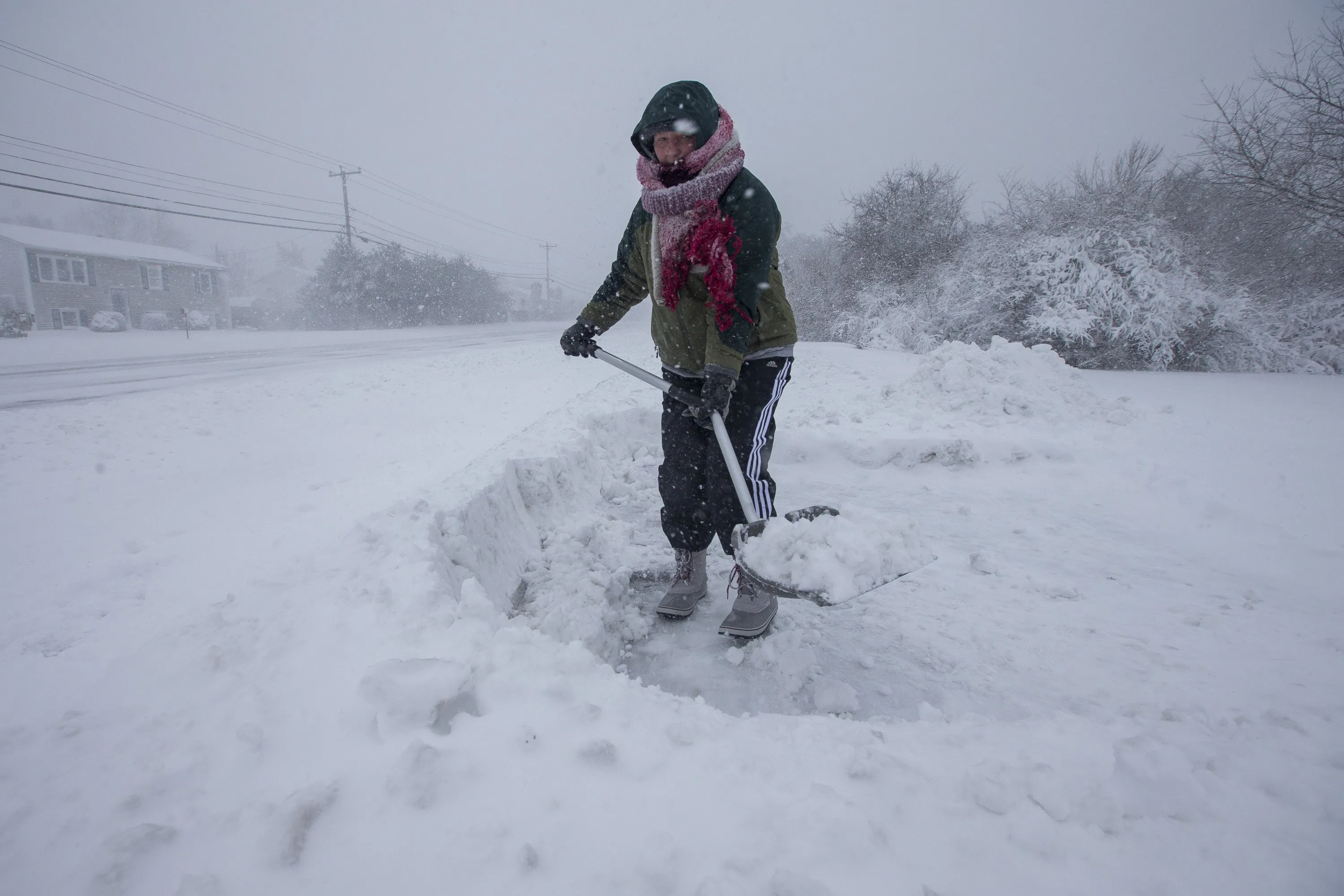 A woman shovels her driveway in Narragansett, Rhode Island, USA, 09 February 2017 as a major snowstorm hit the region. (Photo by Lisa Hornak/EPA)