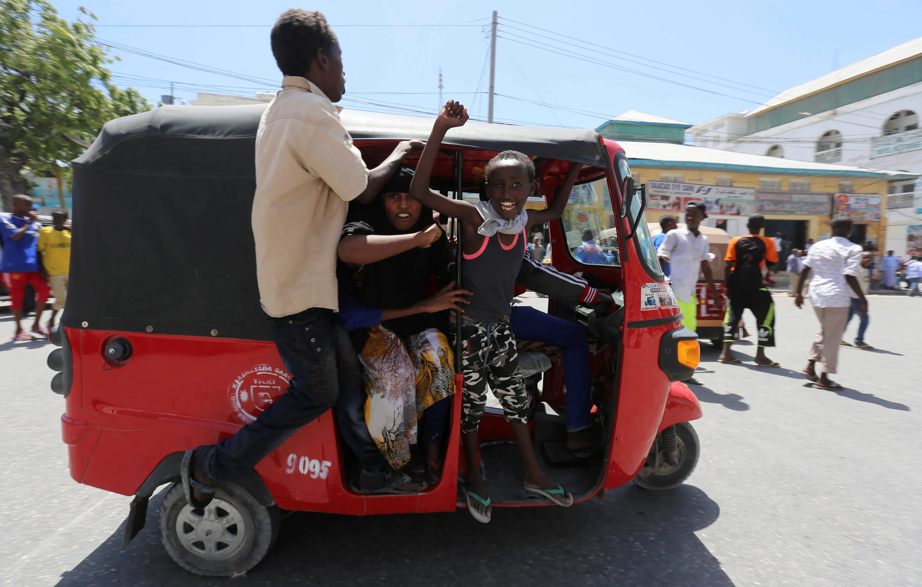 Civilians ride in a rickshaw as they celebrate the election of President Mohamed Abdullahi Mohamed in the streets of Somalia's capital Mogadishu, February 9, 2017. (Photo by Feisal Omar/Reuters)