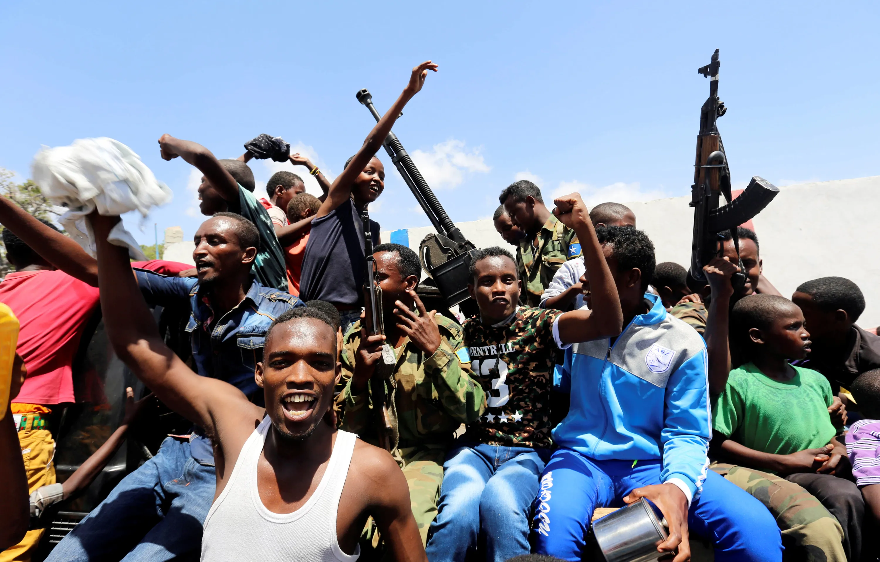 Somali military and civilians celebrate the election of President Mohamed Abdullahi Mohamed in the streets of Somalia's capital Mogadishu, February 9, 2017. (Photo by Feisal Omar/Reuters)
