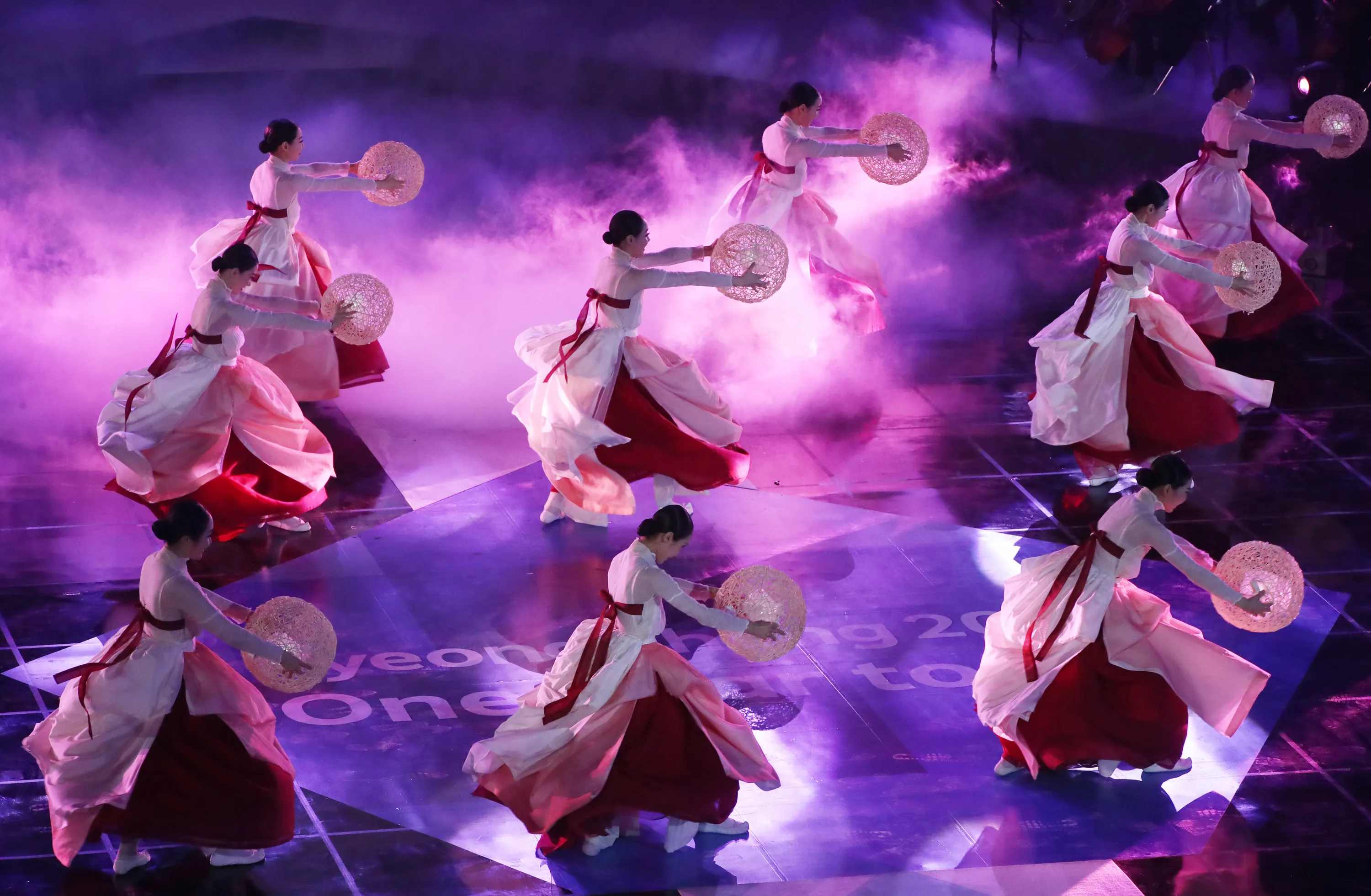 Dancers perform a traditional Korean dance to mark the one-year countdown to the Pyeongchang Winter Olympics, in Gangneung, Gangwon Province, South Korea, 09 February 2017. (Photo by EPA/Yonhap)
