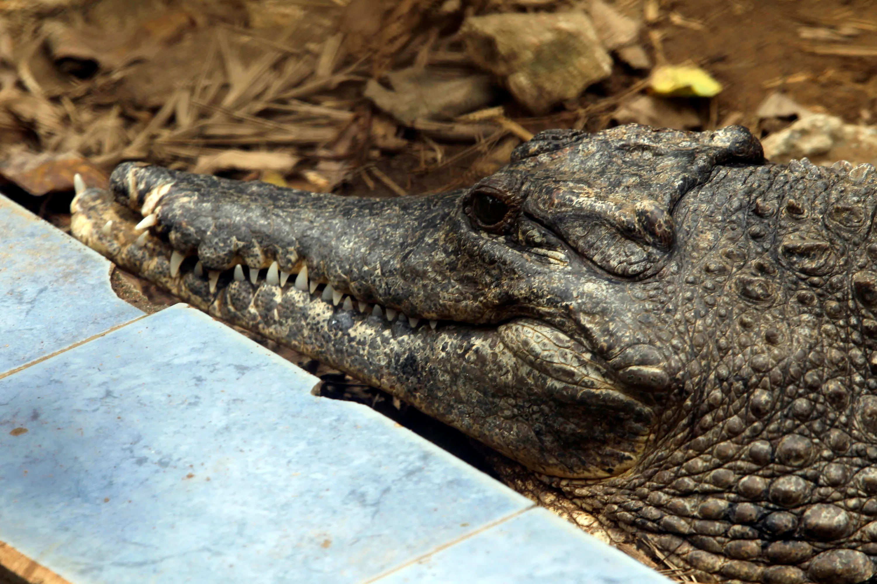 A West African Slender-snouted Crocodile is pictured in its enclosure at the zoo of Abidjan, Ivory Coast September 9, 2016. (Photo by Luc Gnago/Reuters)