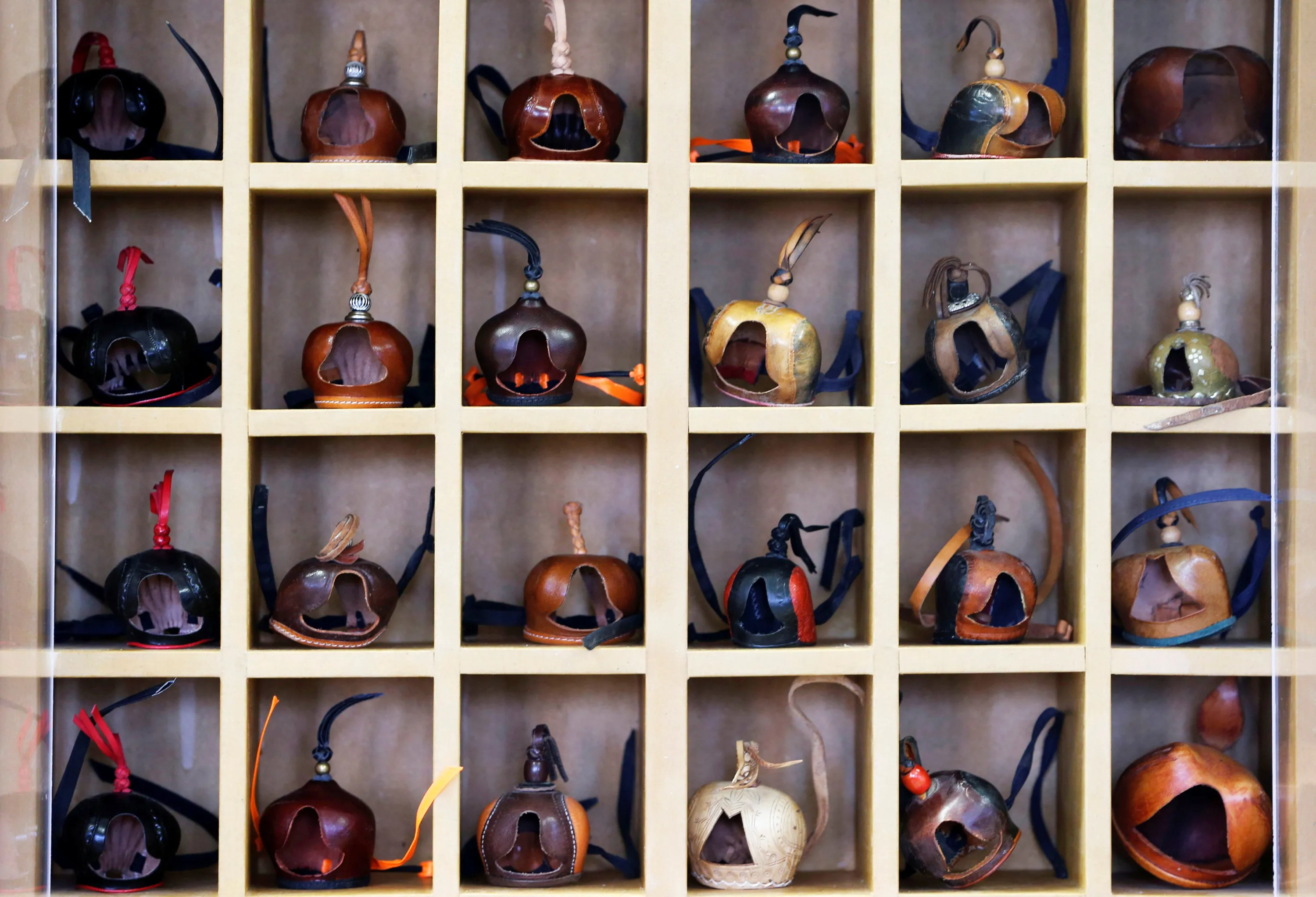 Leather hoods for golden eagle are pictured as part of a military training for combat against drones in Mont-de-Marsan French Air Force base, Southwestern France, February 10, 2017. (Photo by Regis Duvignau/Reuters)