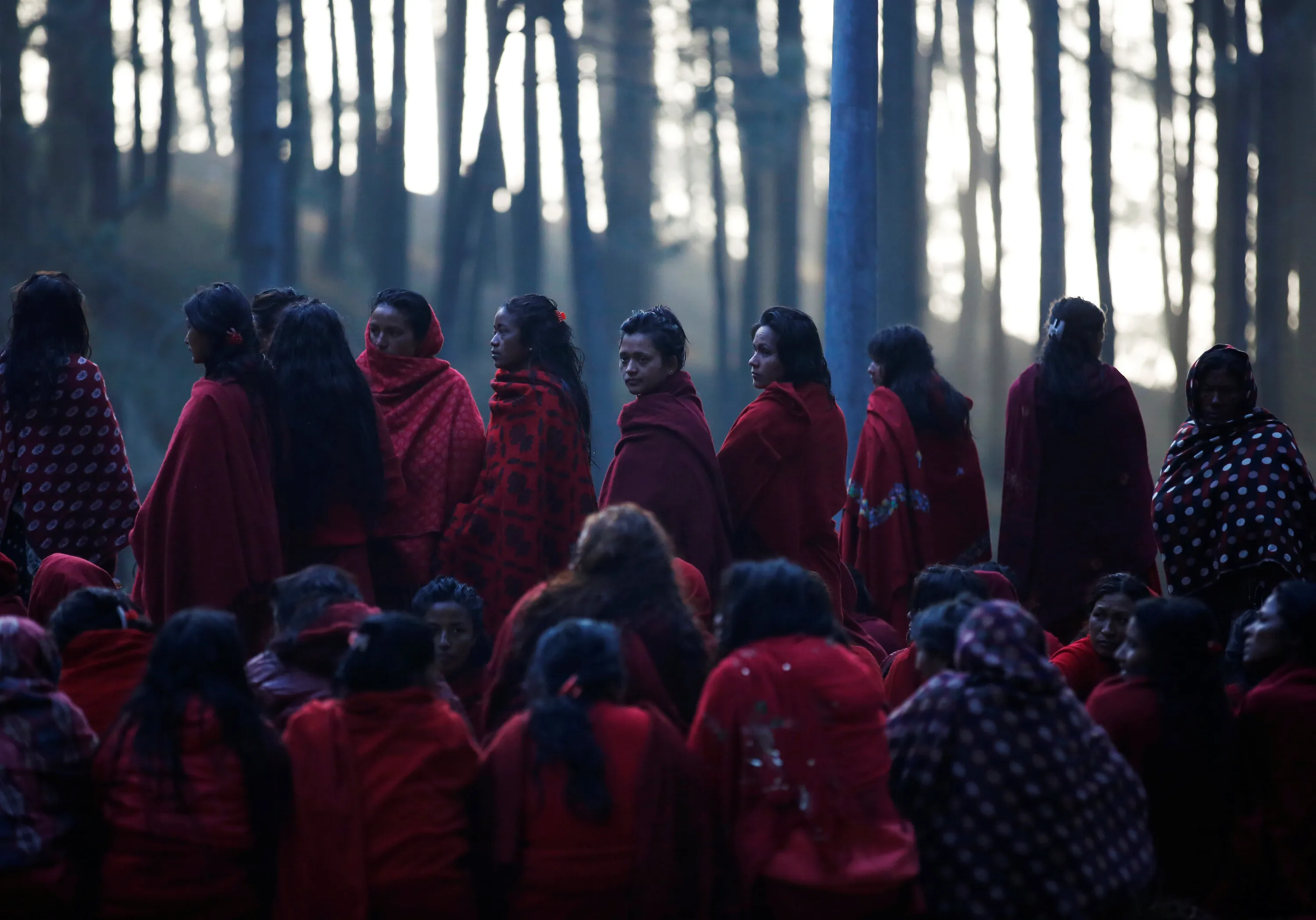 Devotees gather while performing religious rituals during the Swasthani Bratakatha festival in the woods of Changu Narayan in Bhaktapur, Nepal February 8, 2017. (Photo by Navesh Chitrakar/Reuters)