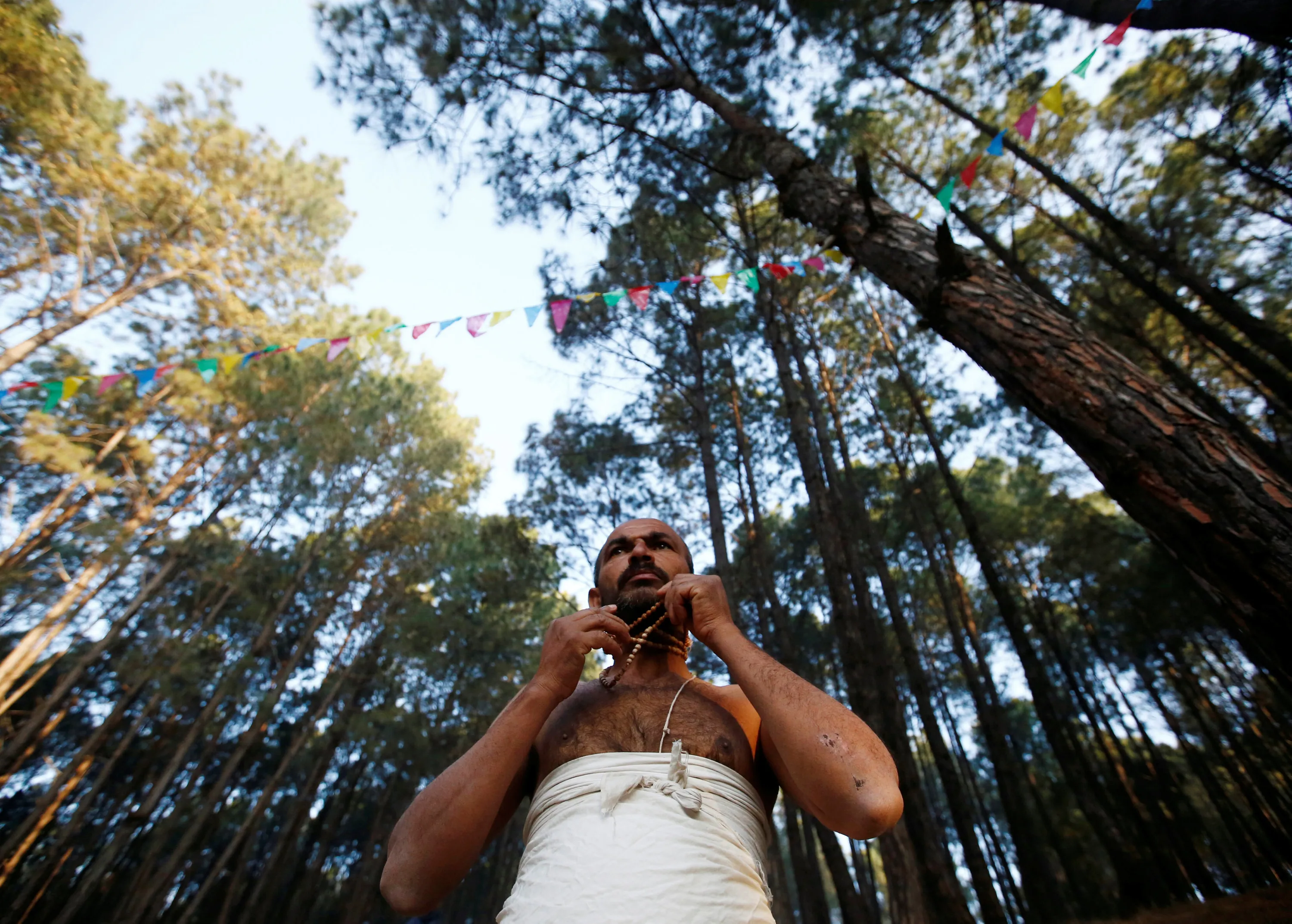 A devotee prepares to perform religious rituals during the Swasthani Bratakatha festival in the woods of Changu Narayan in Bhaktapur, Nepal February 8, 2017. (Photo by Navesh Chitrakar/Reuters)
