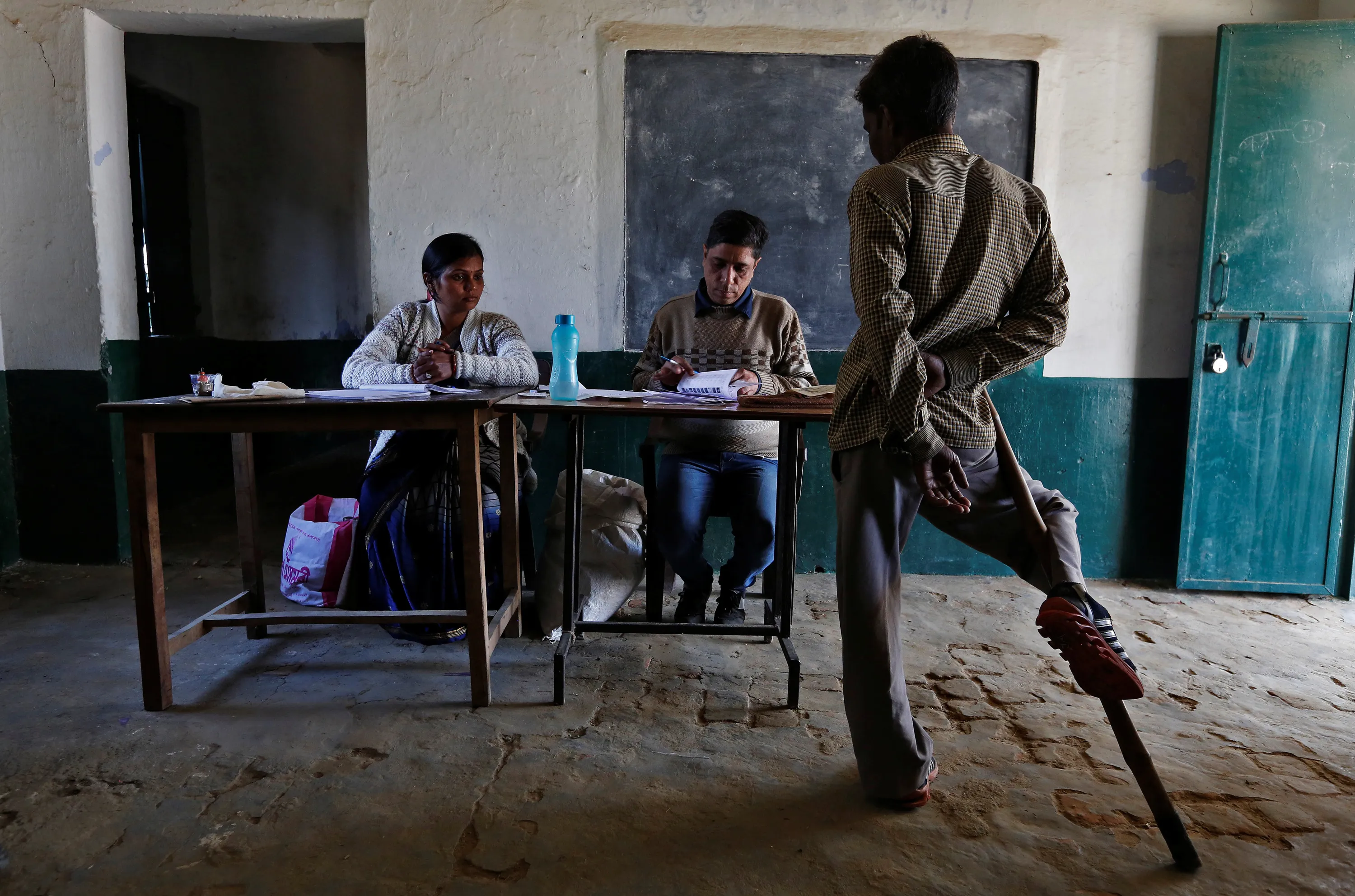 A voter waits to get his voting slip from an officer at a polling station during the state assembly election in Hapur, in the central state of Uttar Pradesh, India, February 11, 2017. (Photo by Adnan Abidi/Reuters)