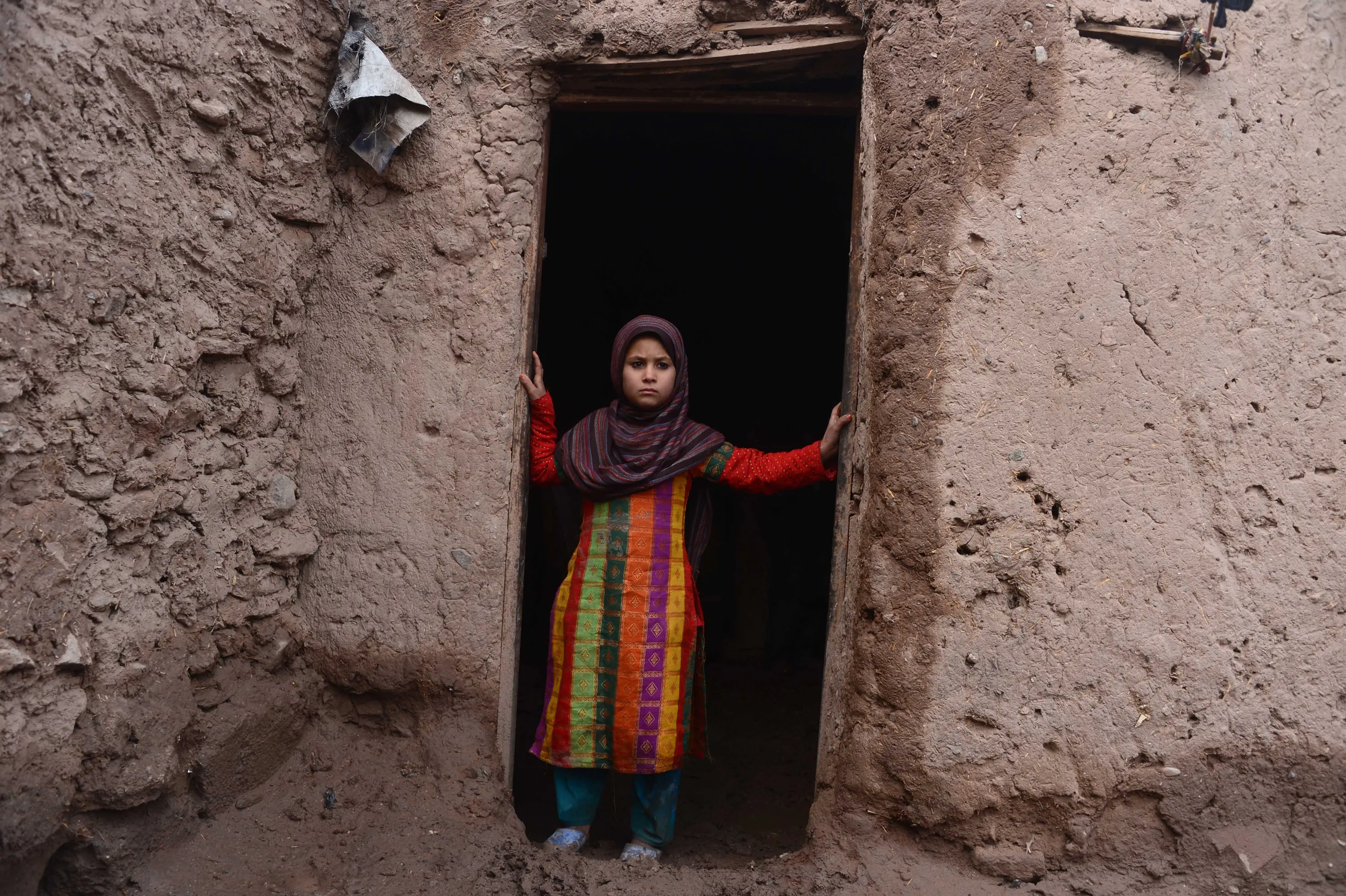 In this photograph taken on January 23, 2017, an Afghan girl looks out of her home in a refugee camp in Herat. (Photo by Aref Karimi/AFP Photo)