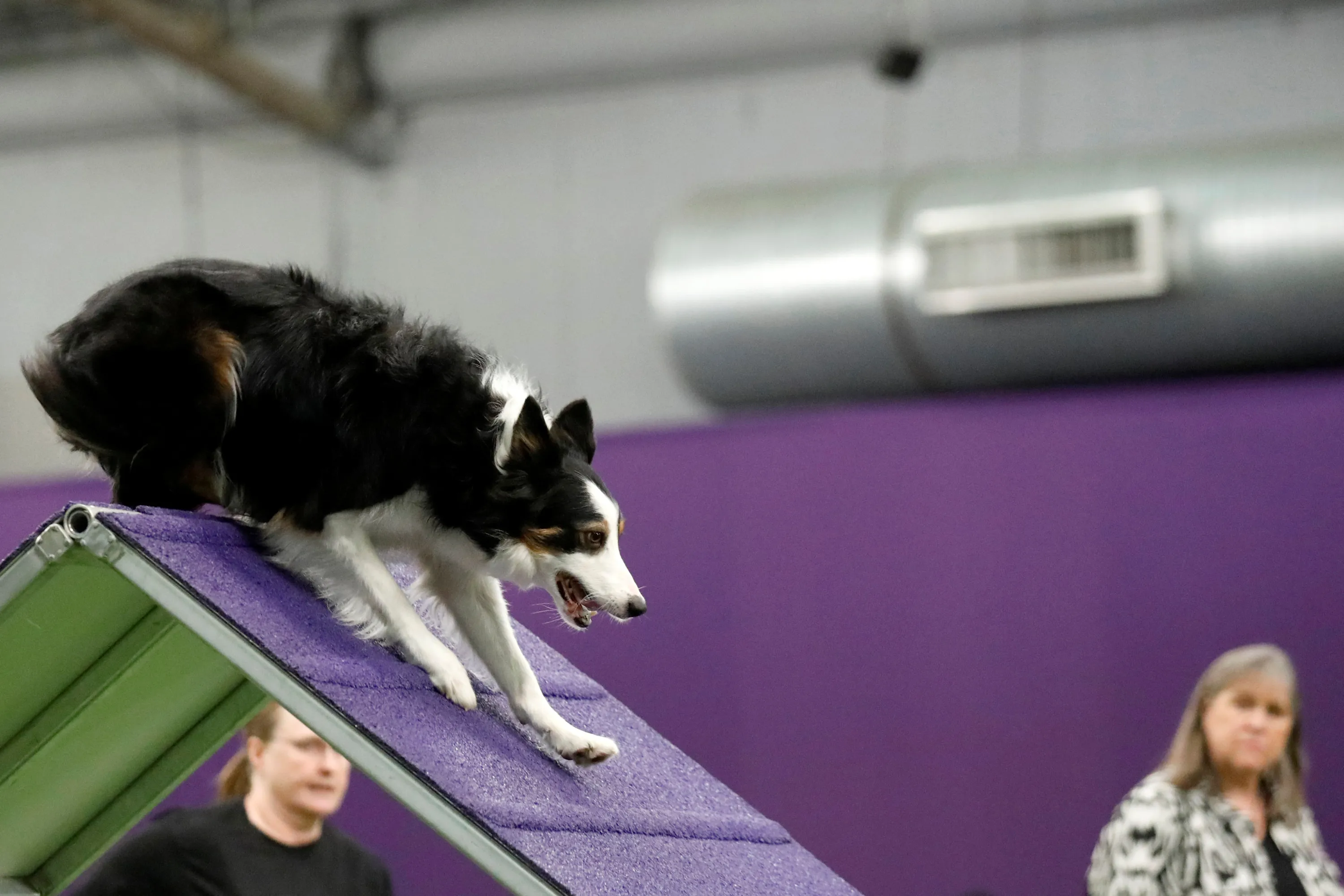 A Border Collie takes part in the Masters Agility competition during the 141st Westminster Kennel Club Dog Show in New York City, U.S. February 11, 2017. (Photo by Brendan McDermid/Reuters)