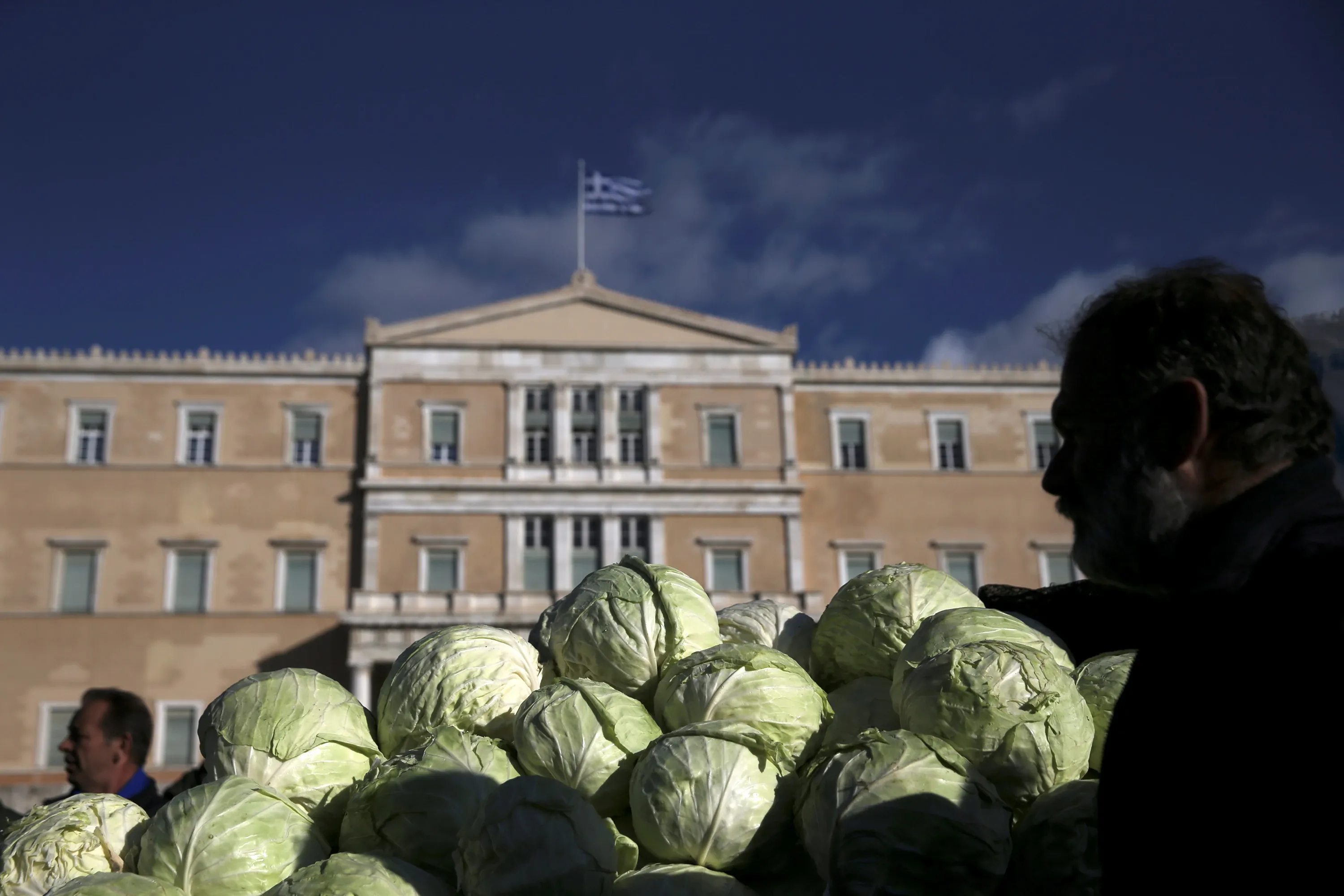 Greek farmers distribute cabbage for free in front of the parliament building during a demonstration to demand tax reductions and compensation, in Athens, Greece February 14, 2017. (Photo by Alkis Konstantinidis/Reuters)
