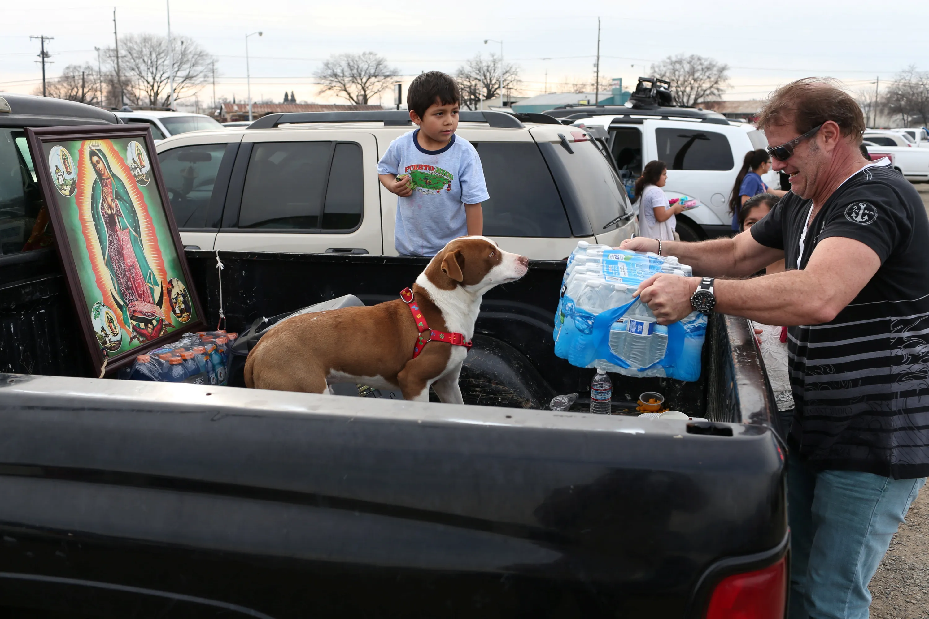 Richard Kelly (R), of Chico, distributes water at a Red Cross relief center in Chico, California, after an evacuation was ordered for communities downstream from the Lake Oroville Dam, in Oroville, California, U.S. February 13, 2017. (Photo by Beck Diefenbach/Reuters)