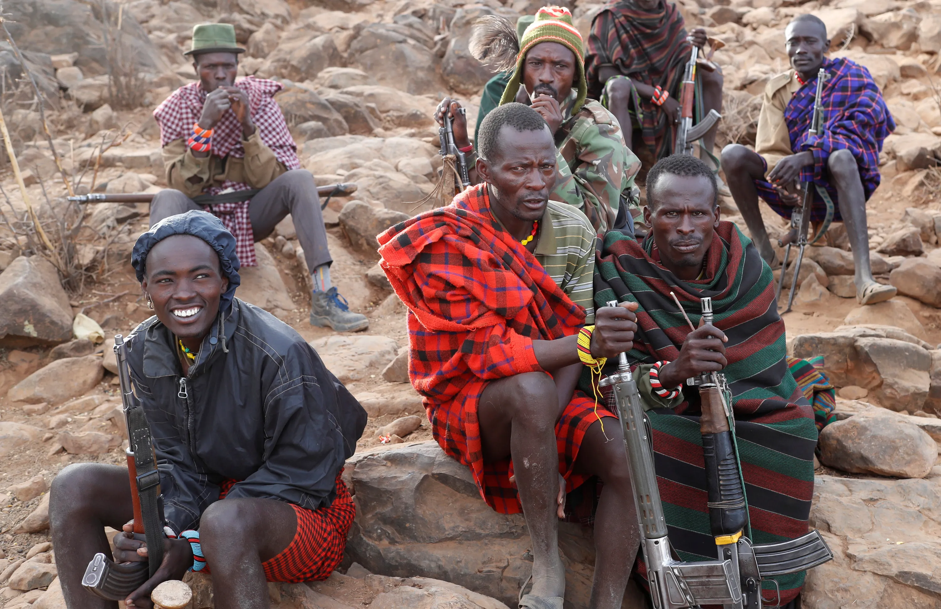 Turkana armed tribesmen sit near a borehole in order to protect their cattle from rival Pokot and Samburu tribesmen near Baragoy, Kenya February 14, 2017. (Photo by Goran Tomasevic/Reuters)