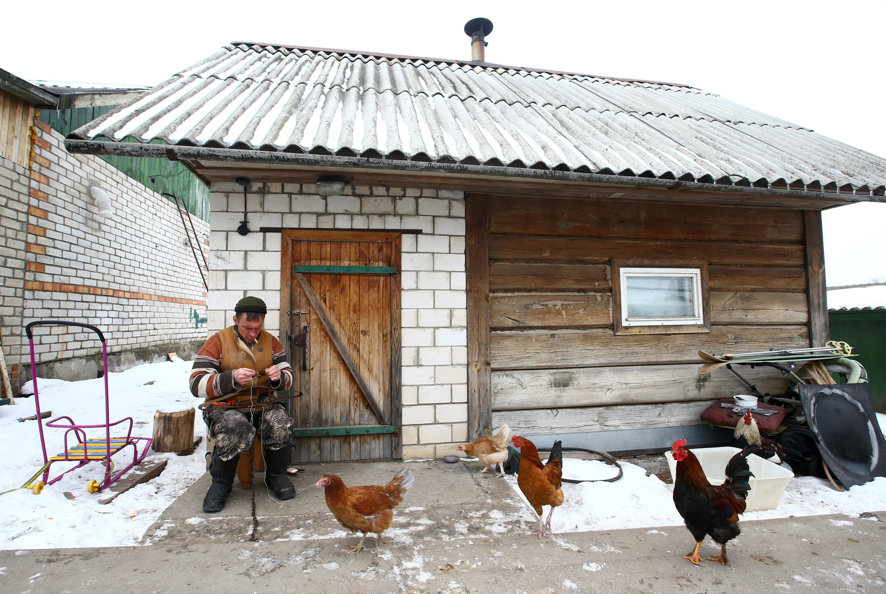 Vladimir Krivenchik, a hunter, repairs a trap for wolves in the village of Khrapkovo, Belarus February 1, 2017. (Photo by Vasily Fedosenko/Reuters)