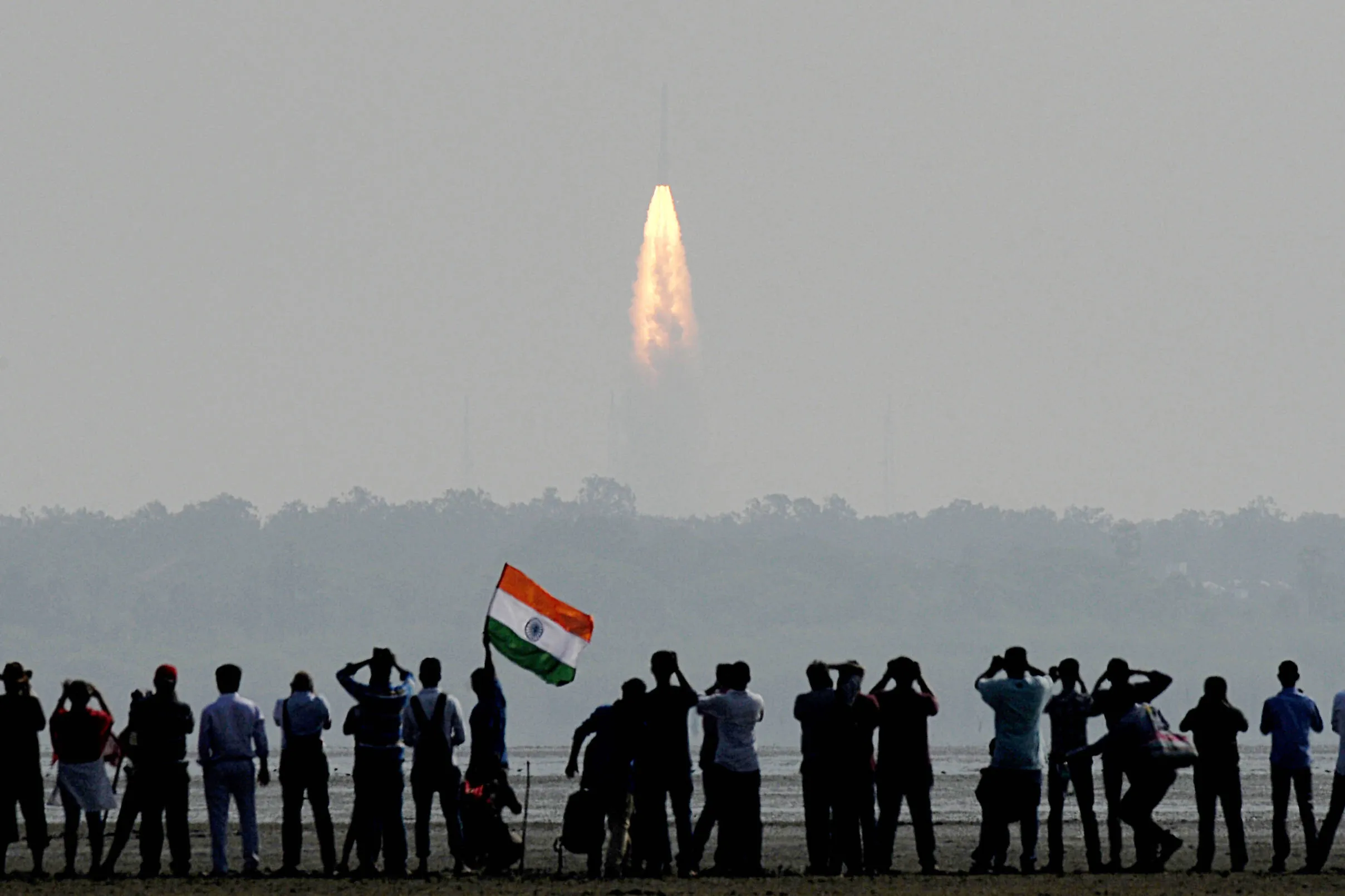 Indian onlookers watch the launch of the Indian Space Research Organisation (ISRO) Polar Satellite Launch Vehicle (PSLV-C37) at Sriharikota on Febuary 15, 2017. India successfully put a record 104 satellites from a single rocket into orbit on February 15 in the latest triumph for its famously frugal space agency. Scientists who were at the launch in the southern spaceport of Sriharikota burst into applause as the head of India's Space Research Organisation (ISRO) announced all the satellites had been ejected. (Photo by Arun Sankar/AFP Photo)
