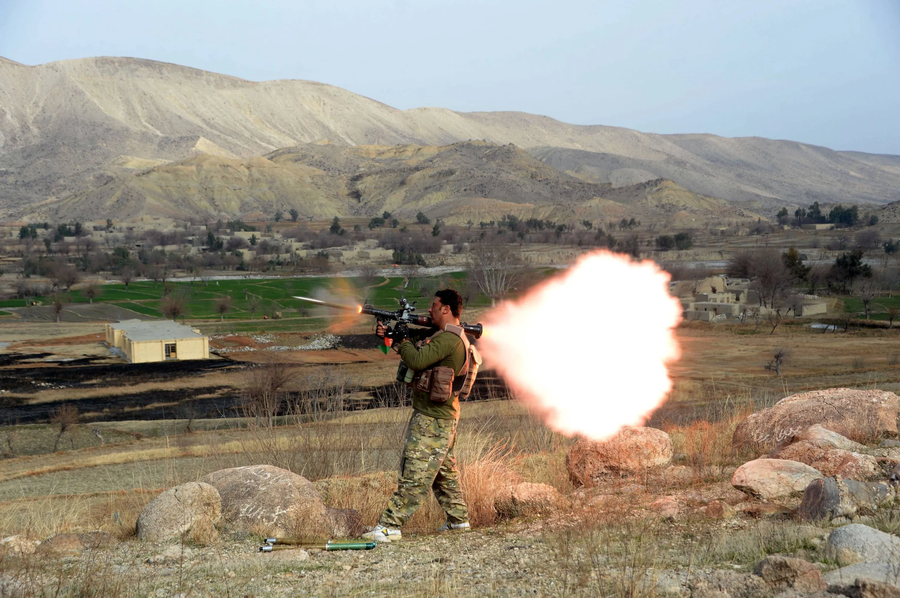 A member of the Afghan security force fires a rocket-propelled grenade (RPG) launcher during an ongoing an operation against Islamic State (IS) militants in Kot district of Nangarhar province on February 16, 2017. Afghan National Army (ANA) and International Air forces have launched a joint military operation against Islamic State (IS) militants, after torched houses of locals and killed several people by IS fighters in the area, so far in the operation killing at least 52, armed insurgents and wounding 18 others, and killed tow security forces, officials said. (Photo by Noorullah Shirzada/AFP Photo)