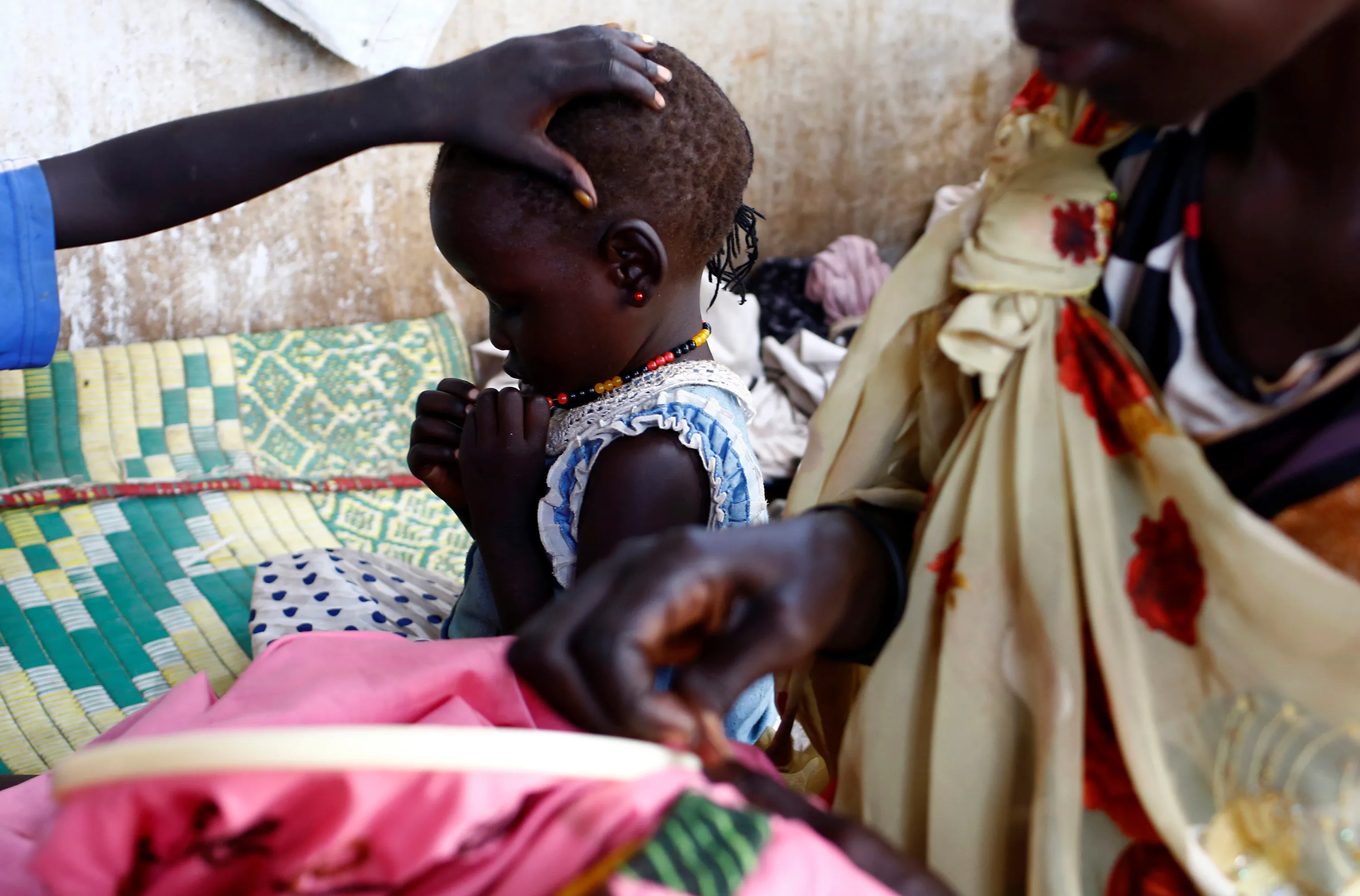 Nyagonga Machul, 38, sews a table cloth as Ruai Mario, 10, touches the head of his sister Nyawan Mario, 4, in their home at the United Nations Mission in South Sudan (UNMISS) Protection of Civilian site (CoP) in Juba, South Sudan, February 15, 2017. (Photo by Siegfried Modola/Reuters)