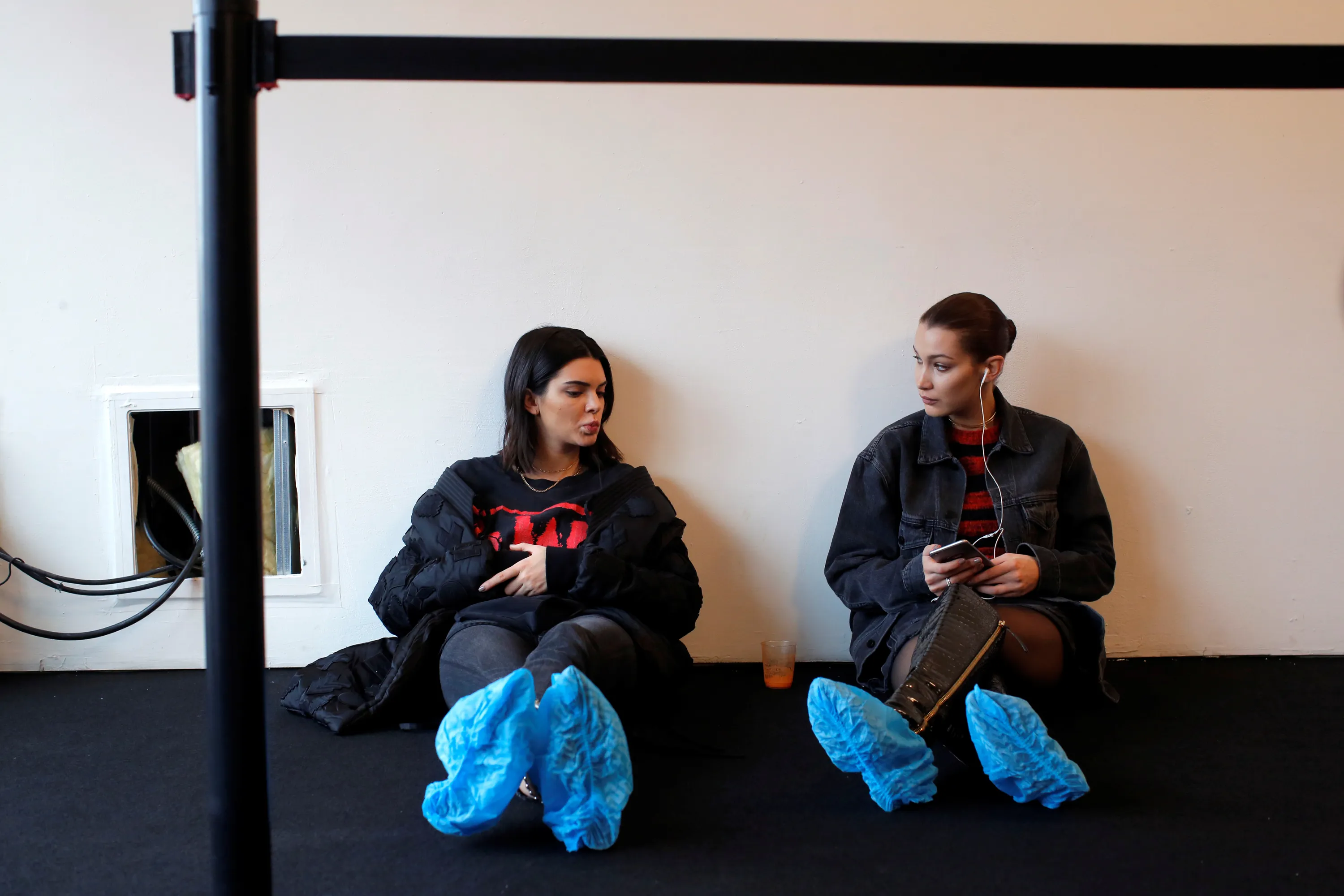 Models Kendall Jenner and Bella Hadid wait backstage in shoe covers before the Michael Kors Autumn/Winter 2017 collection presentation during New York Fashion Week in Manhattan, New York Wednesday, February 15, 2017. (Photo by Andrew Kelly/Reuters)